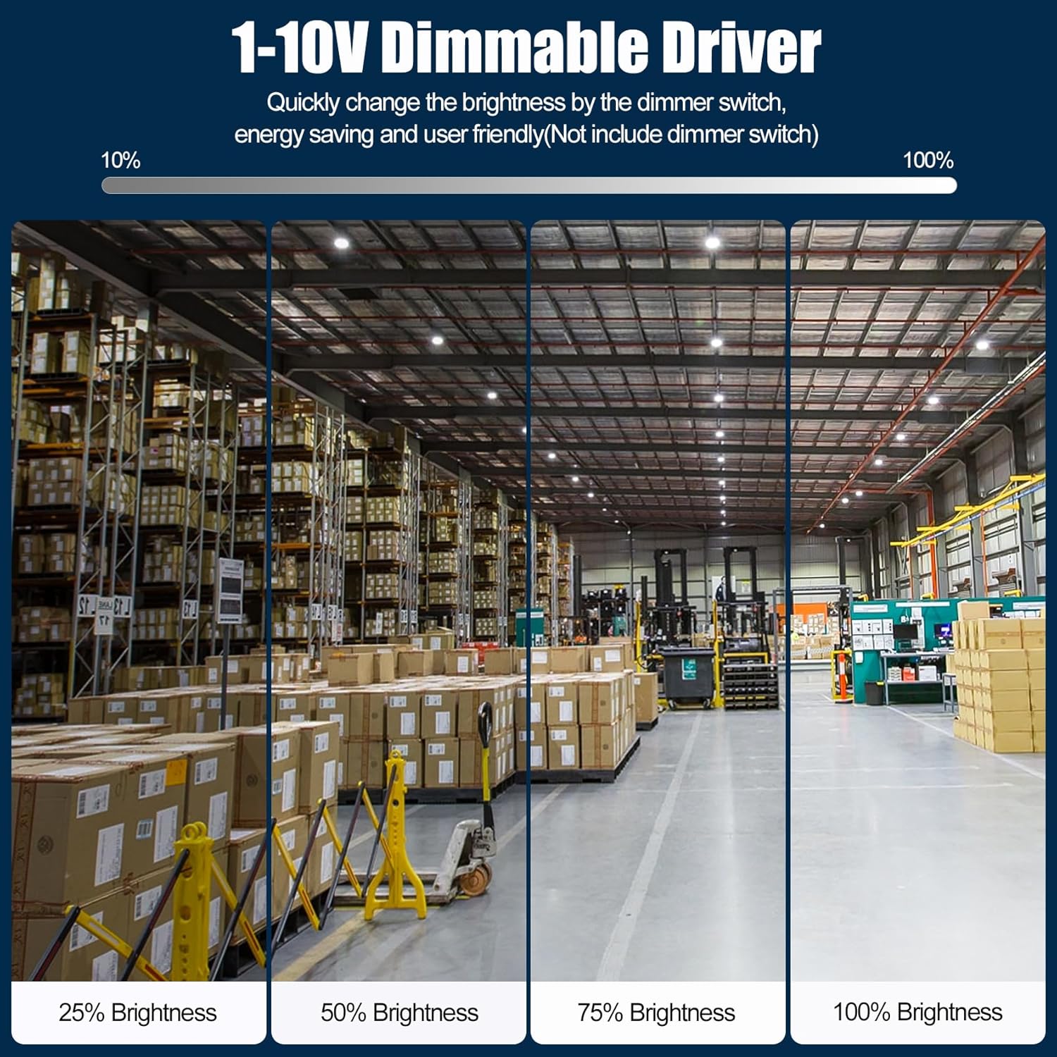 - 【Safety】This high bay LED shop light come with 4.9FT power cable (UL Certified) without US Plug,can be worked under power supply of AC100-277V. Whole light has ETL and DLC Listed