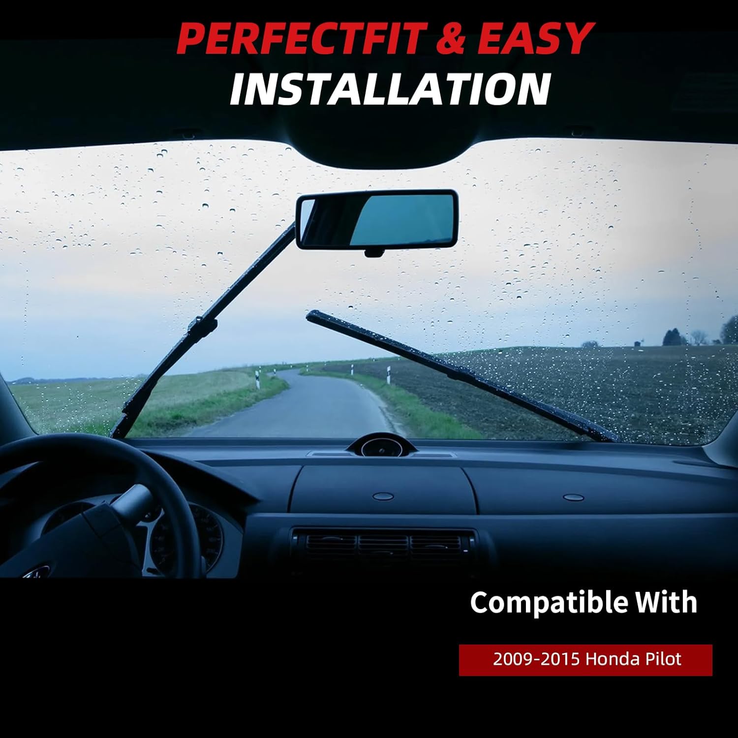 - [22"+21"+15" Perfect Fitment]: Replacement for Honda Pilot 2009-2015. Our windshield wiper blades are engineered to provide a perfect fit for vehicle models, ensuring optimal performance and coverage