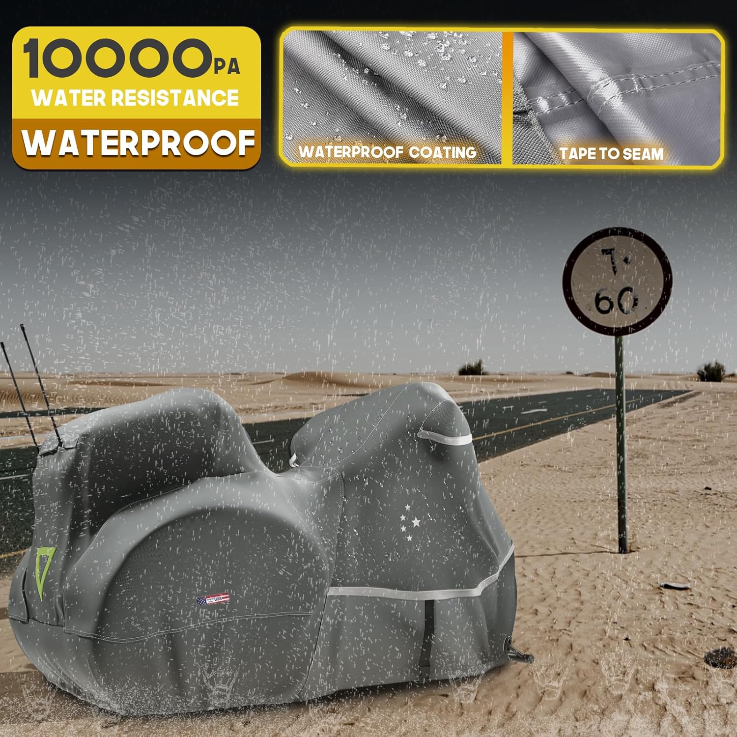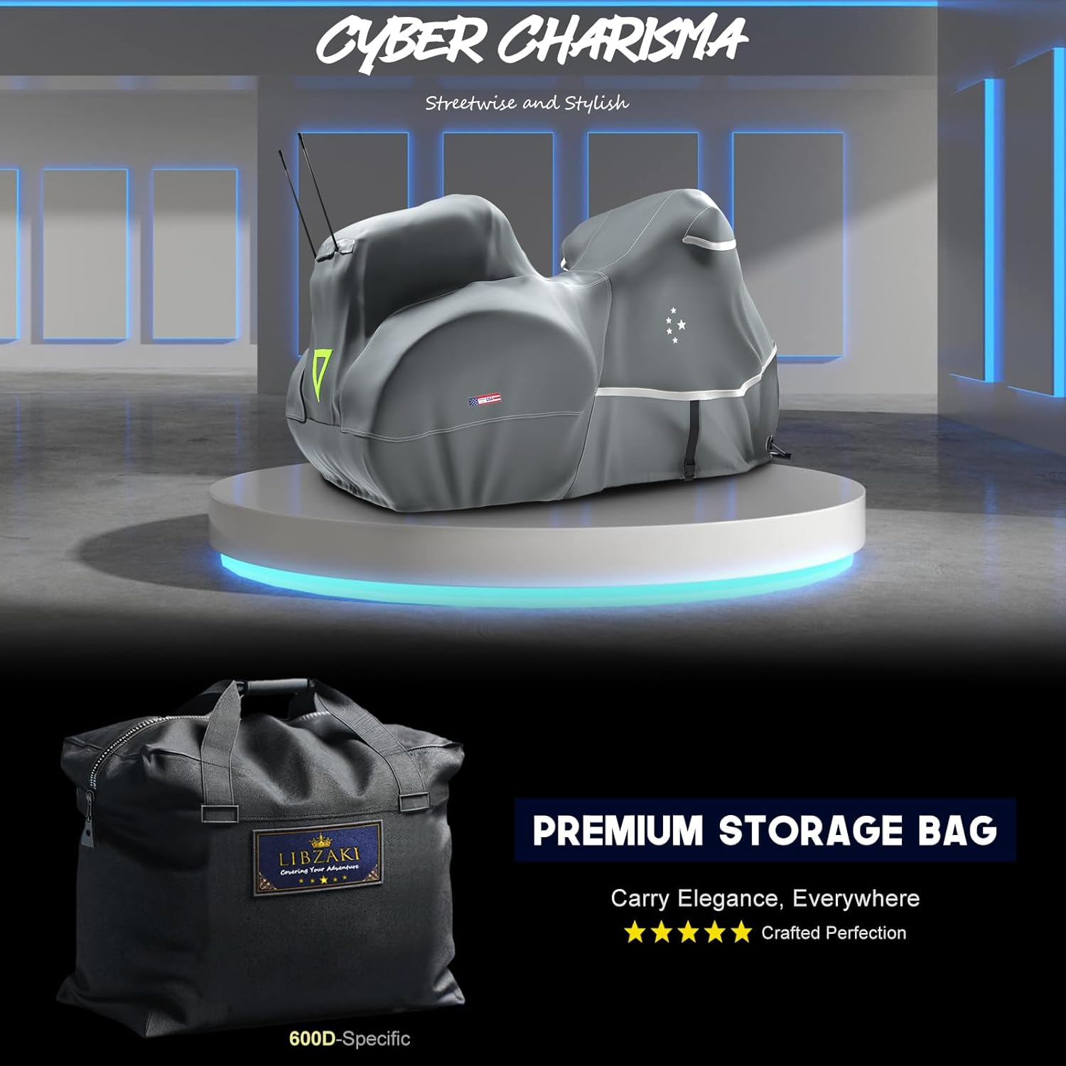 Trike Cover,Motorcycle Cover LI LIBZAKI Heavy Duty 600D Waterproof for Trike Models Harley Davidson freewheeler, Tri Glide, CVO Version, Goldwing, Chidftain, Challenger/Gray