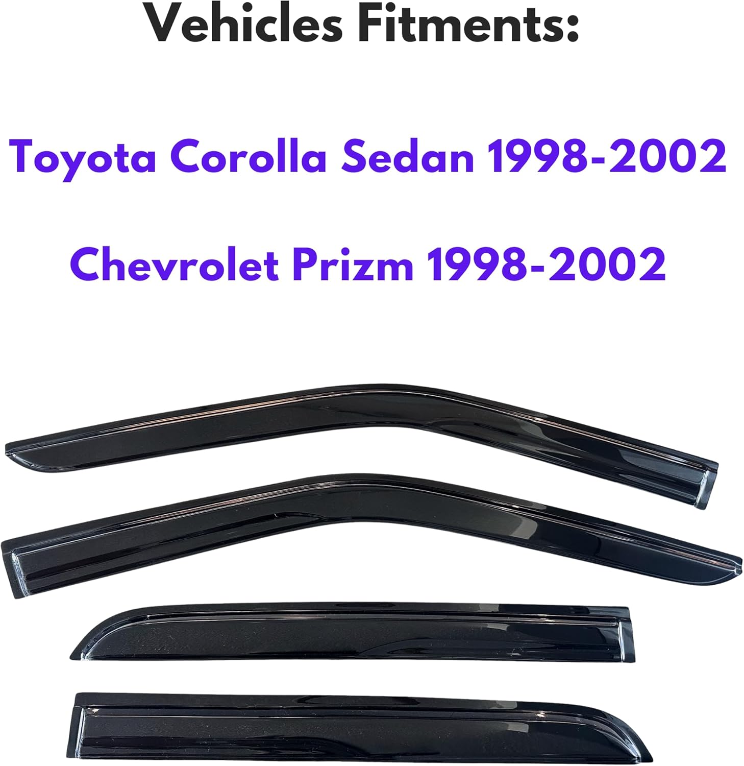 - 【Perfect Fit】KPY window visors rain guards vent deflectors compatible with Toyota Corolla Sedan & Chevrolet/Chevy Prizm 1998 1999 2000 2001 2002 (Mugen Style)