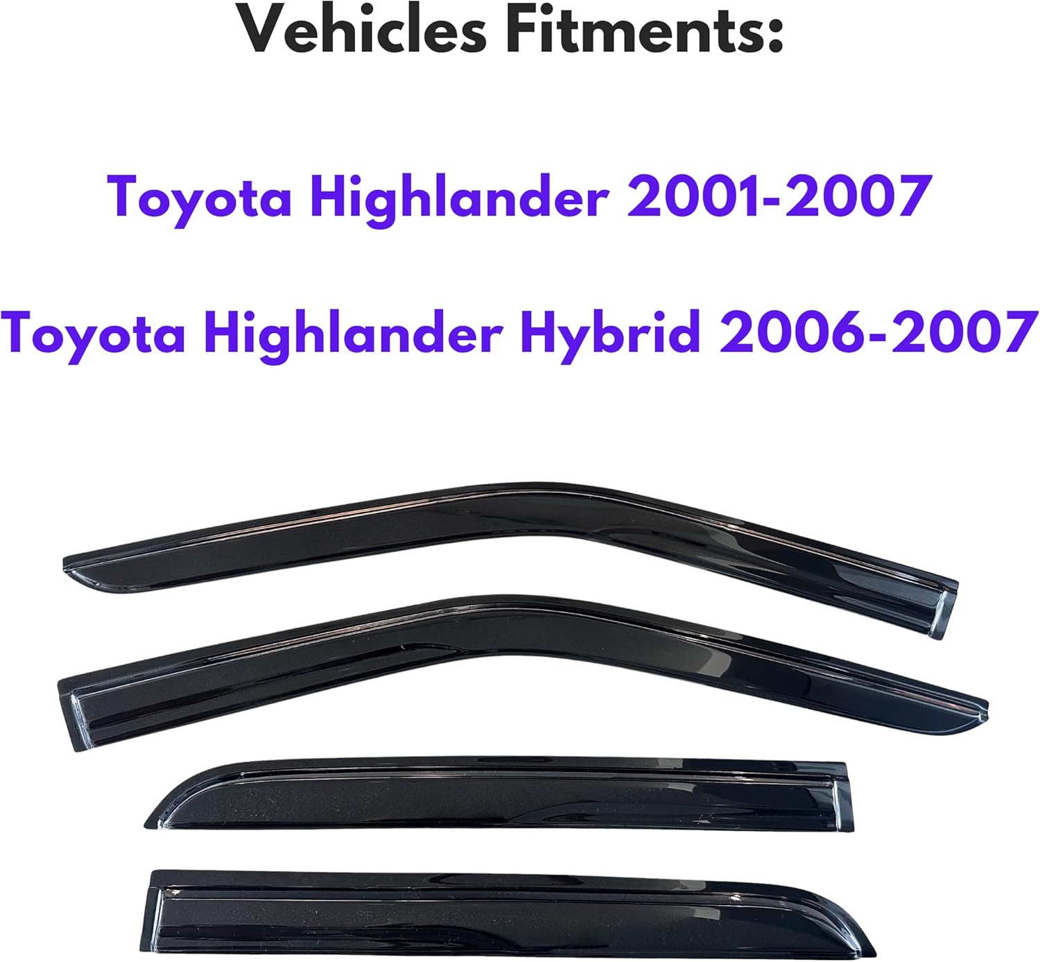 - 【Perfect Fit】KPY window visors rain guards vent deflectors compatible with Toyota Highlander & Highlander Hybrid 2001 2002 2003 2004 2005 2006 2007 (Mugen Style)