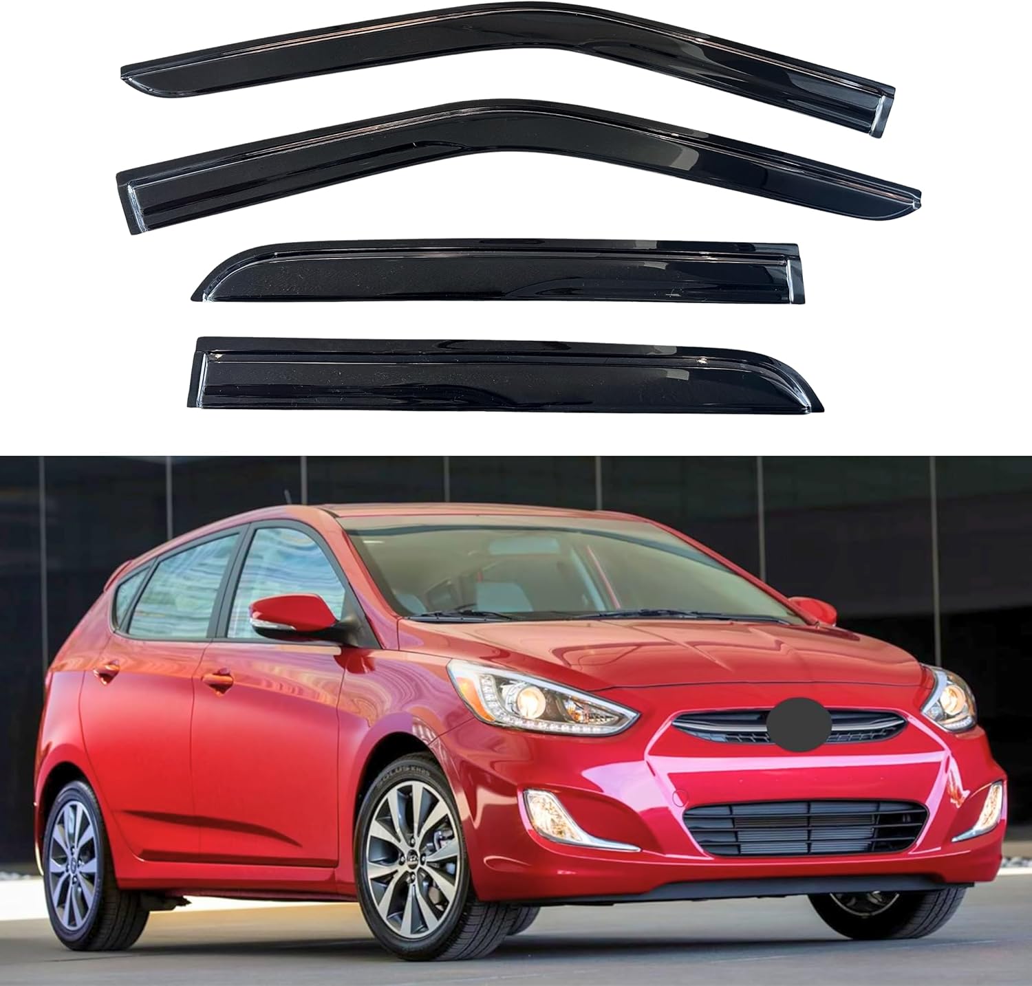 - 【Perfect Fit】KPY window visors rain guards vent deflectors compatible with Hyundai Accent Hatchback 2012 2013 2014 2015 2016 2017 (Mugen Style)