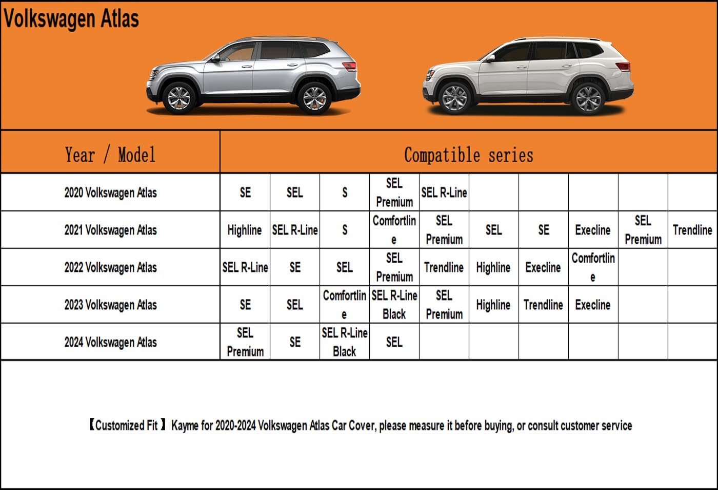 - 【Suitable for】— Custom fit for VW Volkswagen Atlas (2020-2025) . Come with a large enough portable bag to store your cover when you do not use