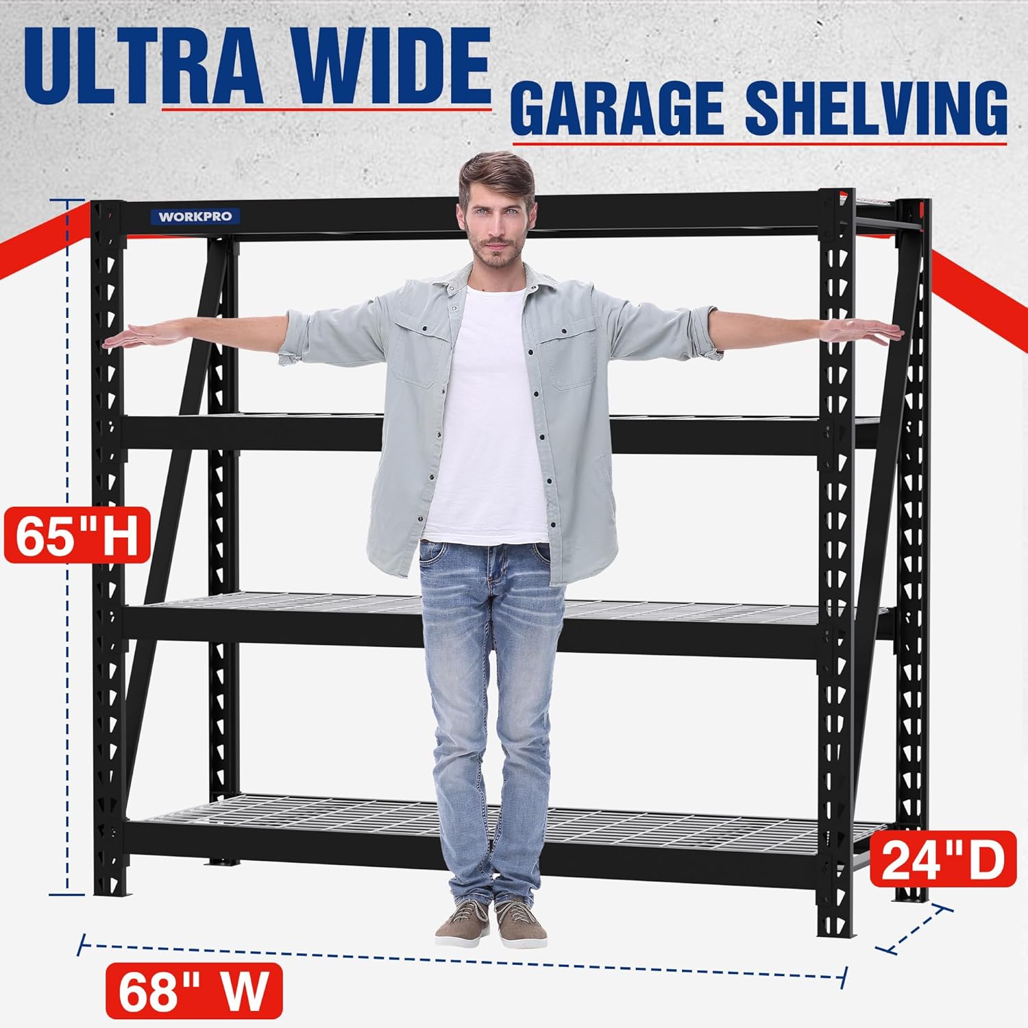 WORKPRO Garage Shelving, 68" W x 24" D x 65" H, 7200 LBS Load, Heavy Duty Metal Shelves for Storage, Industrial Storage Rack for Warehouse Kitchen Shop Basement, Black, Pack of 1
