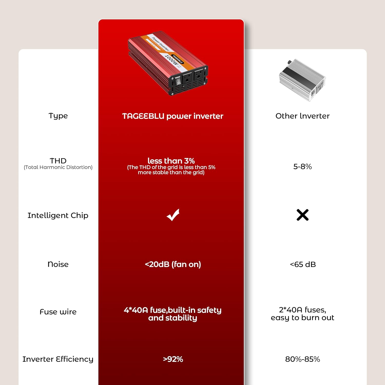 - 【Premium 700W Modified Sine Wave Power Inverter】This power inverter 12V to 110V provides 700W continuous DC to AC power, 1400W peak surge during load start-up, 12V to 120V AC modified sine wave with conversion efficiency >90%, 2 AC outlets and digital LCD display.