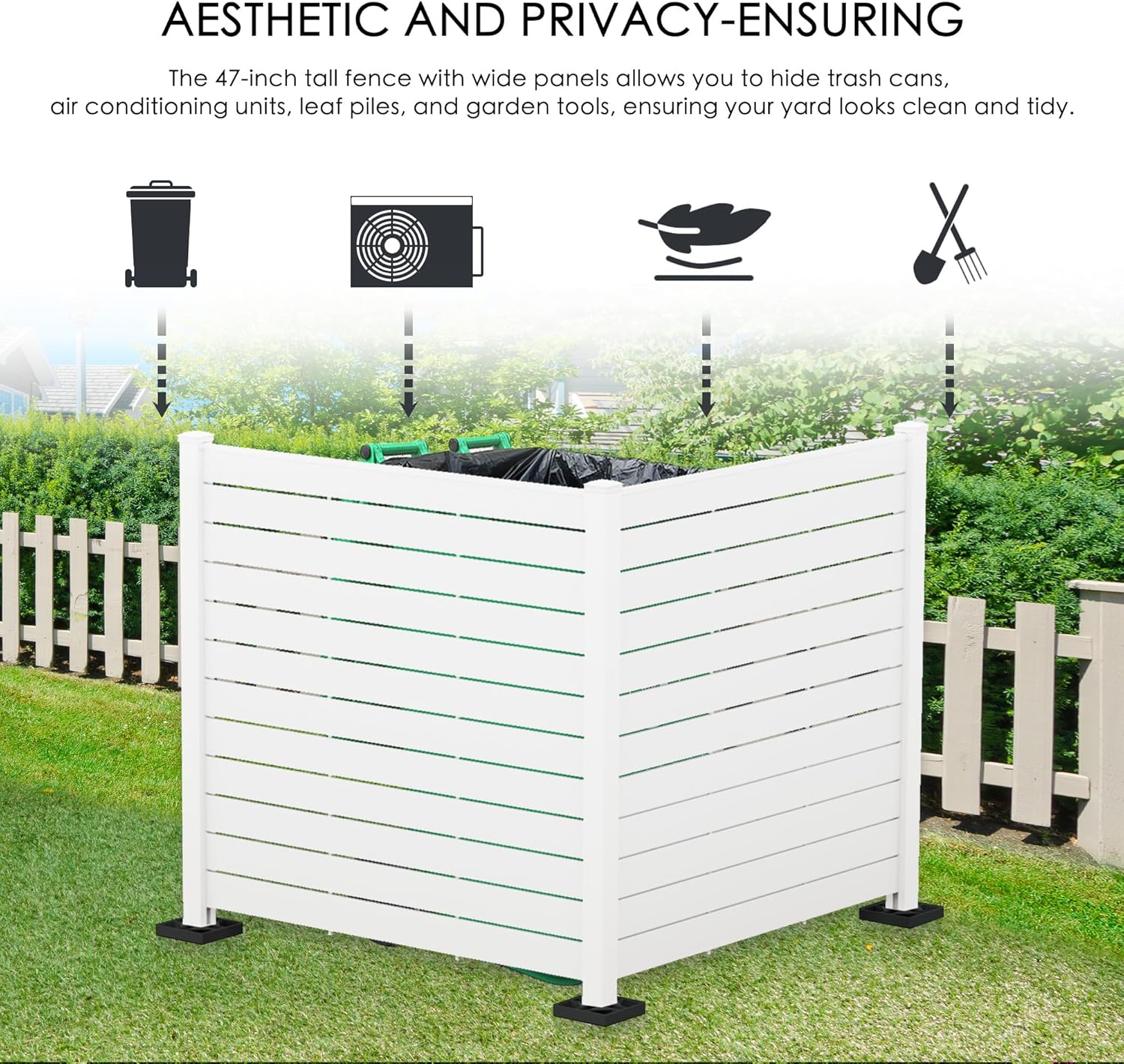 - 🏡 Privacy Ensuring: Standing at 48 inches tall with wide panels, this fence effectively hides trash cans, air conditioning units, leaf piles, and garden tools, keeping unsightly items out of sight and ensuring your yard looks clean and tidy.