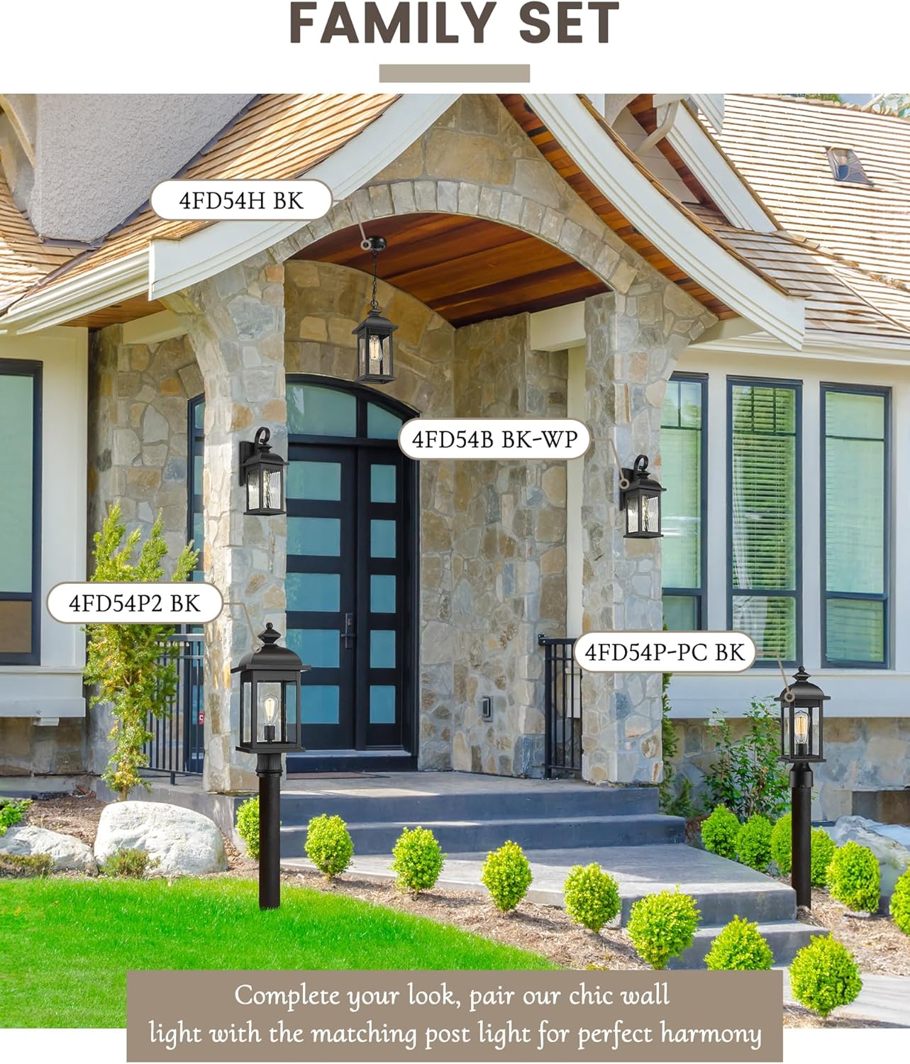 FEMILA 2 Packs Outdoor Waterproof Wall Lights Fixture, 15" Wall Lantern for Porch, Anti-Rust Matte Black Finish with Water Ripple Glass,4FD54B-2PK BK-WP