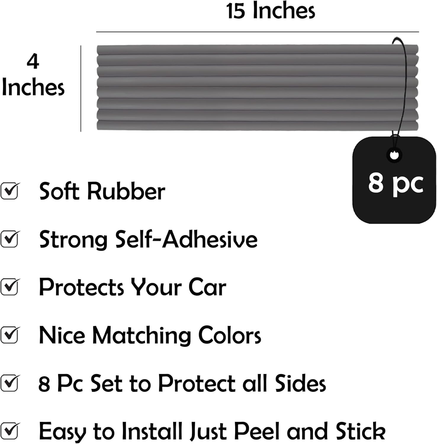 Rubber Bond Garage Wall Protectors 8 Pack - 4x15 Inches Strong Self-Adhesive Rubber Bumper Protectors for Garage Walls - Anti-Scratch and Waterproof (Grey)