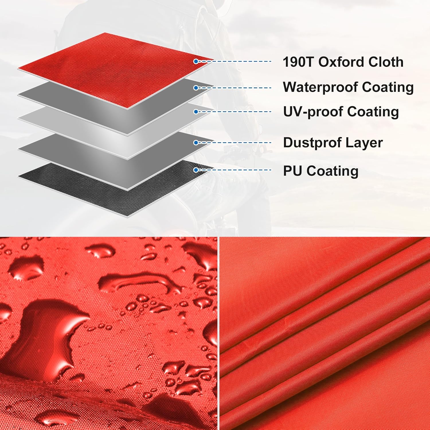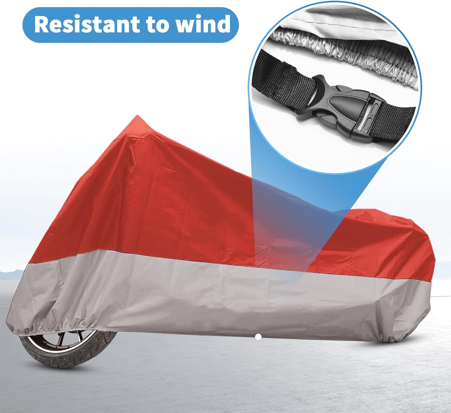 X AUTOHAUX Motorcycle Cover for Harley Davidson for Honda for Suzuki All Season Waterproof Sun Outdoor Protection Motorbike Cover Fits Up to 104.33'' Motorcycles Cover XXL Red Silver Tone