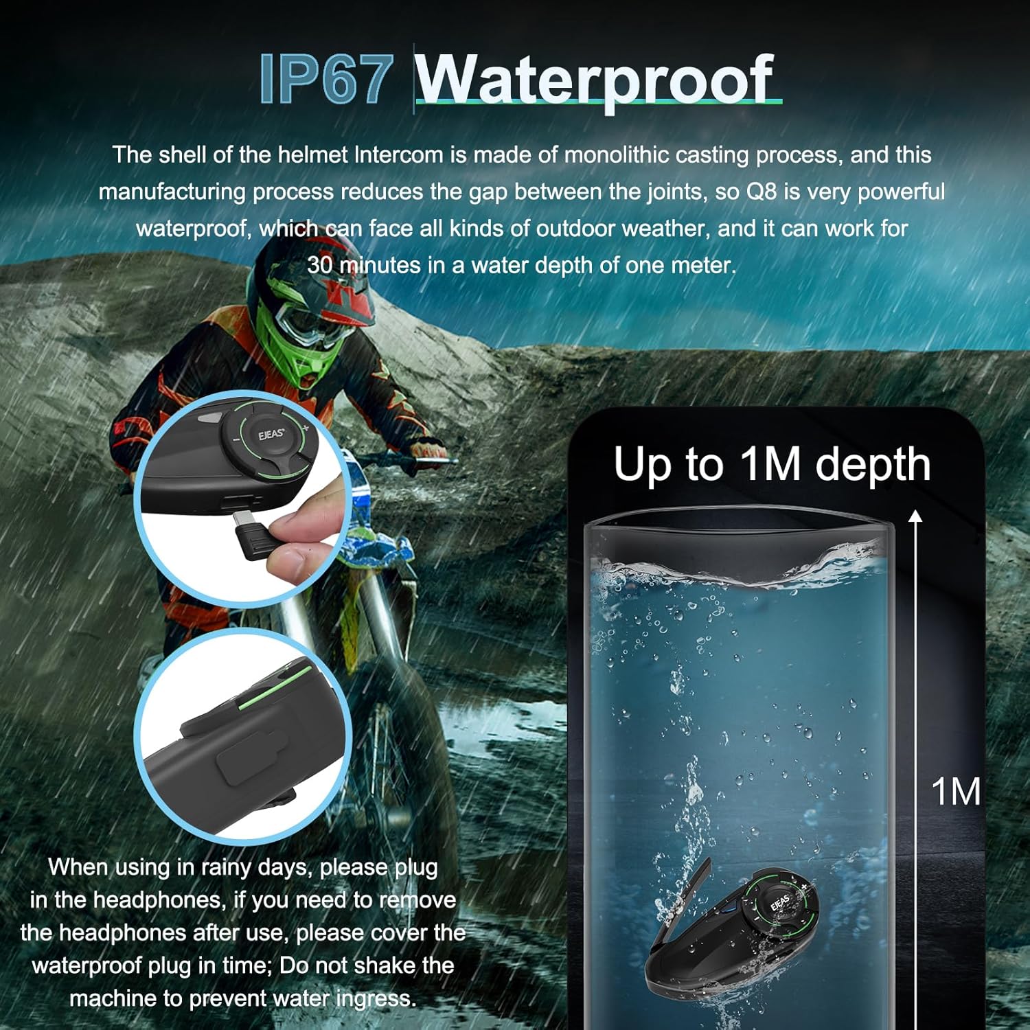Q8 Motorcycle Helmet Bluetooth Intercom Headset, 230hours Standby, 6 Riders Mesh Communication Systems with Audio Multitasking, Music Sharing, Noise Cancellation, FM Radio, Loud Interphone -1 Pack