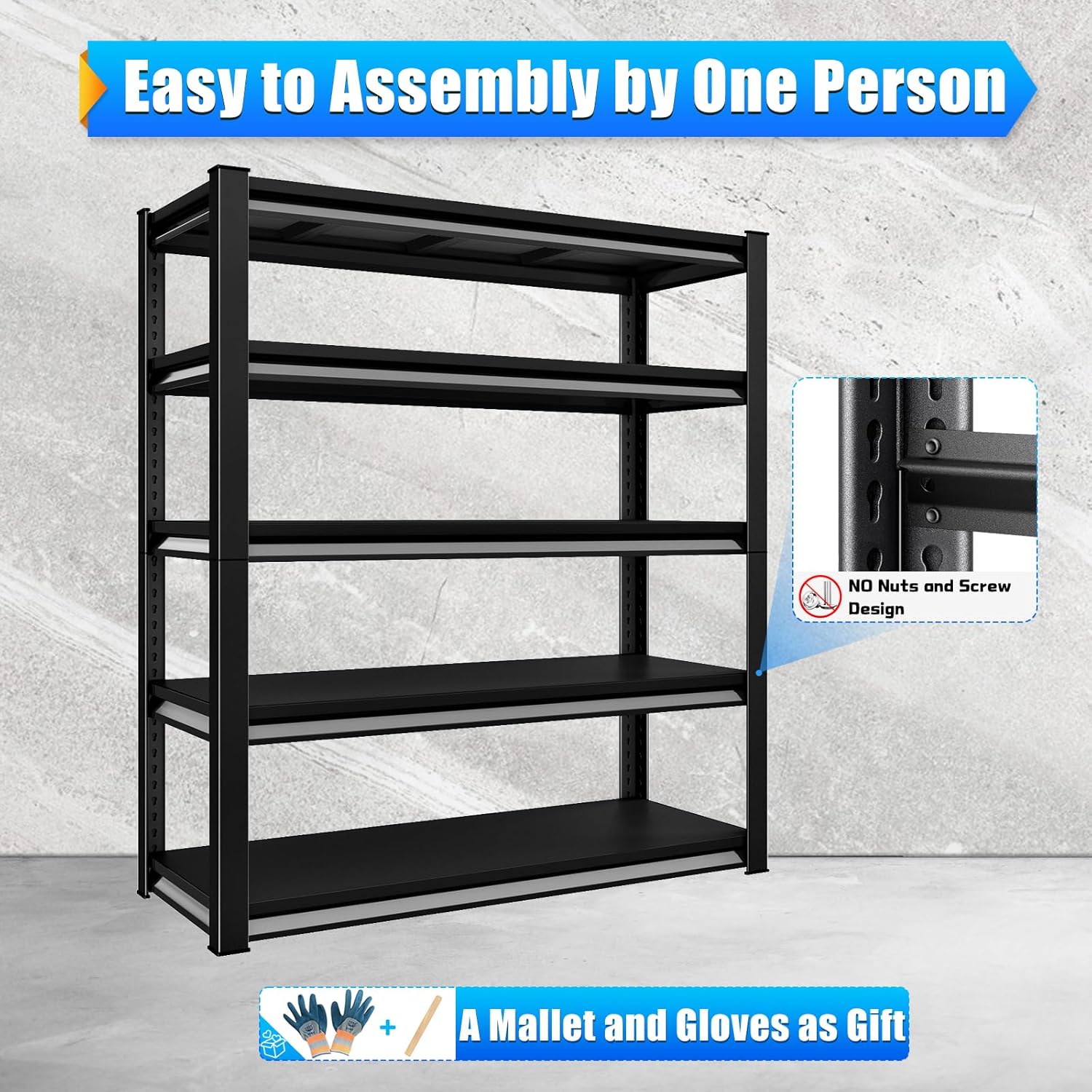 48" W Garage Shelving Heavy Duty,2800LBS Loads Adjustable Garage Storage Shelves,5-Tier Metal Storage Racks and Shelving Units, Utility Rack Shelves,48”W x 18”D x 78”H,Black