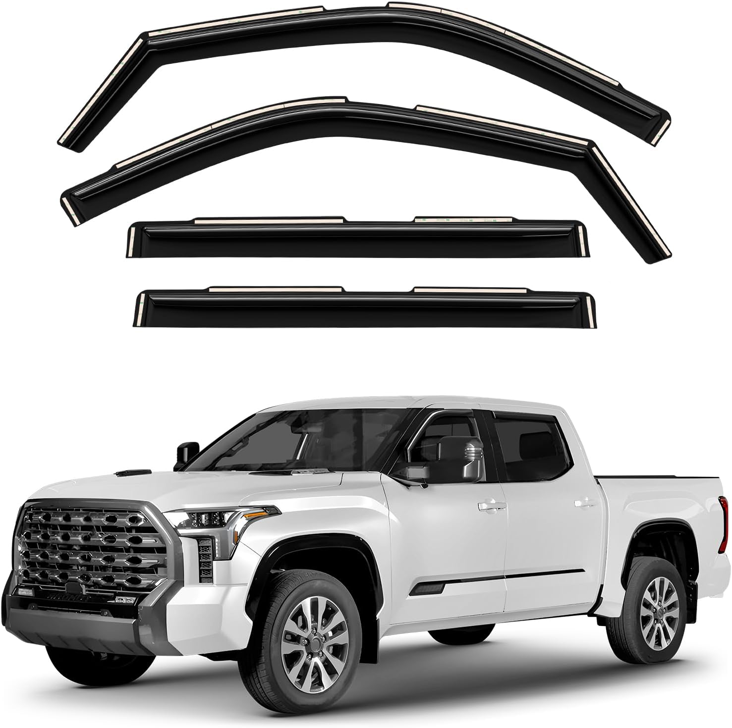 Window Deflectors Smoke Tinted In-Channel Side Window Vent Visor Deflectors Rain Guards Compatible with Toyota Tundra 2022-2025 CrewMax - 4pcs. GW0732