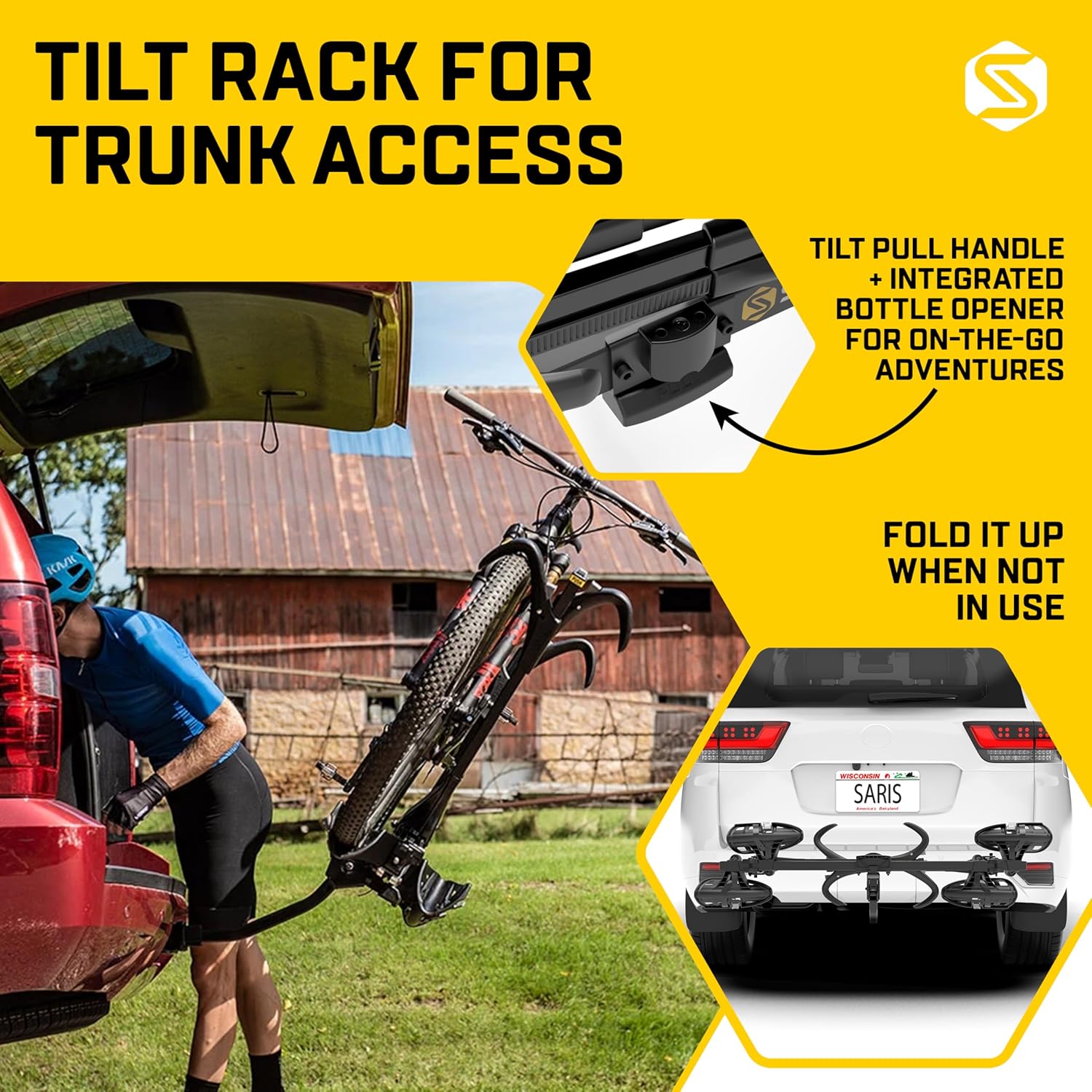 Saris SuperClamp G3 2-Bike Hitch Rack – Lightweight Platform Bike Carrier for Car, SUV, Truck – Tilting Design, Secure Wheel Clamping, Fits Road, Mountain, E-Bikes – 1.25" and 2" Hitch Receiver