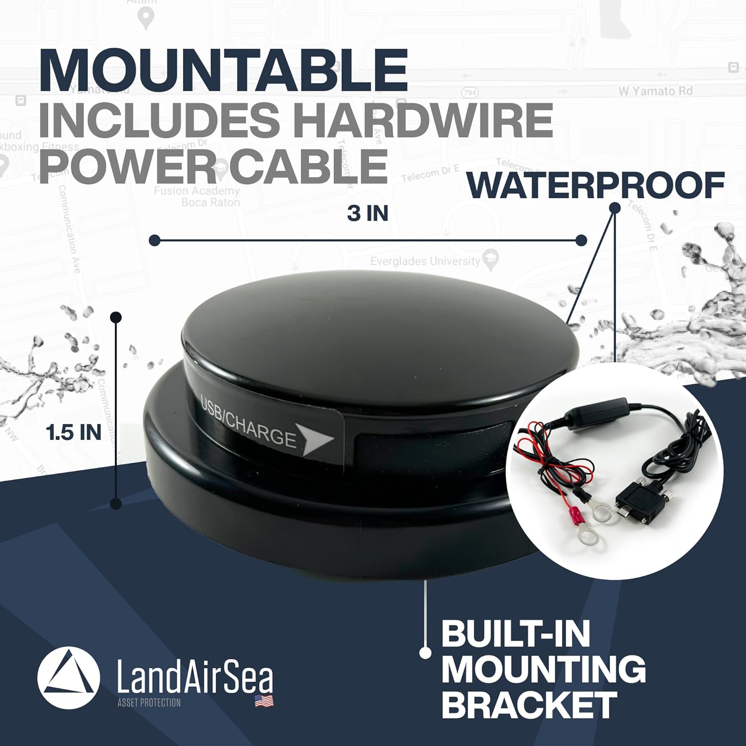 - [LIFETIME WARRANTY] Durable and compact this premium IP67-rated waterproof GPS tracker is built to last. LandAirSea, a USA-based company and pioneer in GPS tracking offers a unconditional lifetime warranty covers any manufacturing defects in the device encountered during normal use. Made in the USA from Domestic & Imported Parts. (Optional Hardwire Kit for continuous run time is available.)