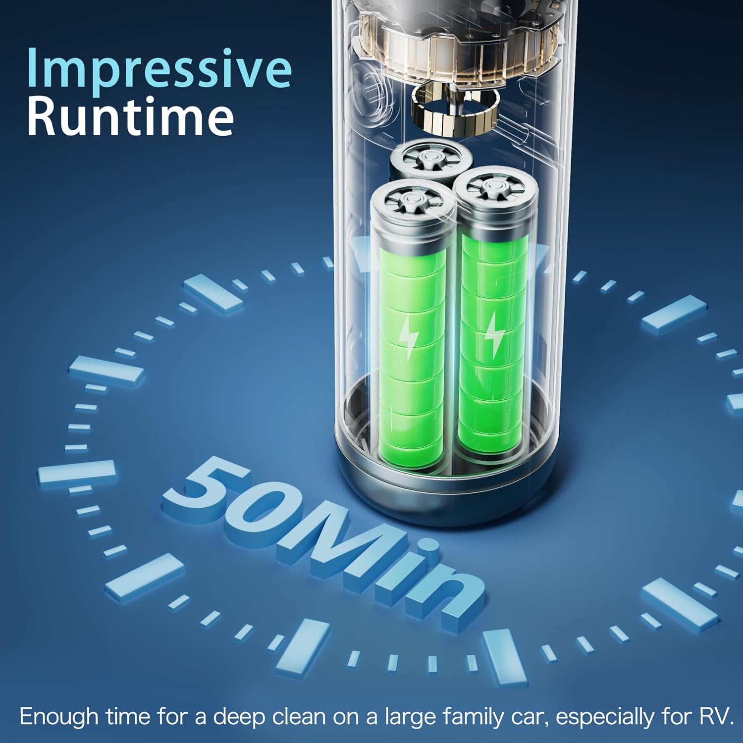 Car Vacuum, Car Vacuum Portable Cordless with 20000Pa, Car Vacuum Cleaner High Power, 50-Min Decent Runtime, Car Vacuum Cleaner with Flexible Attachments