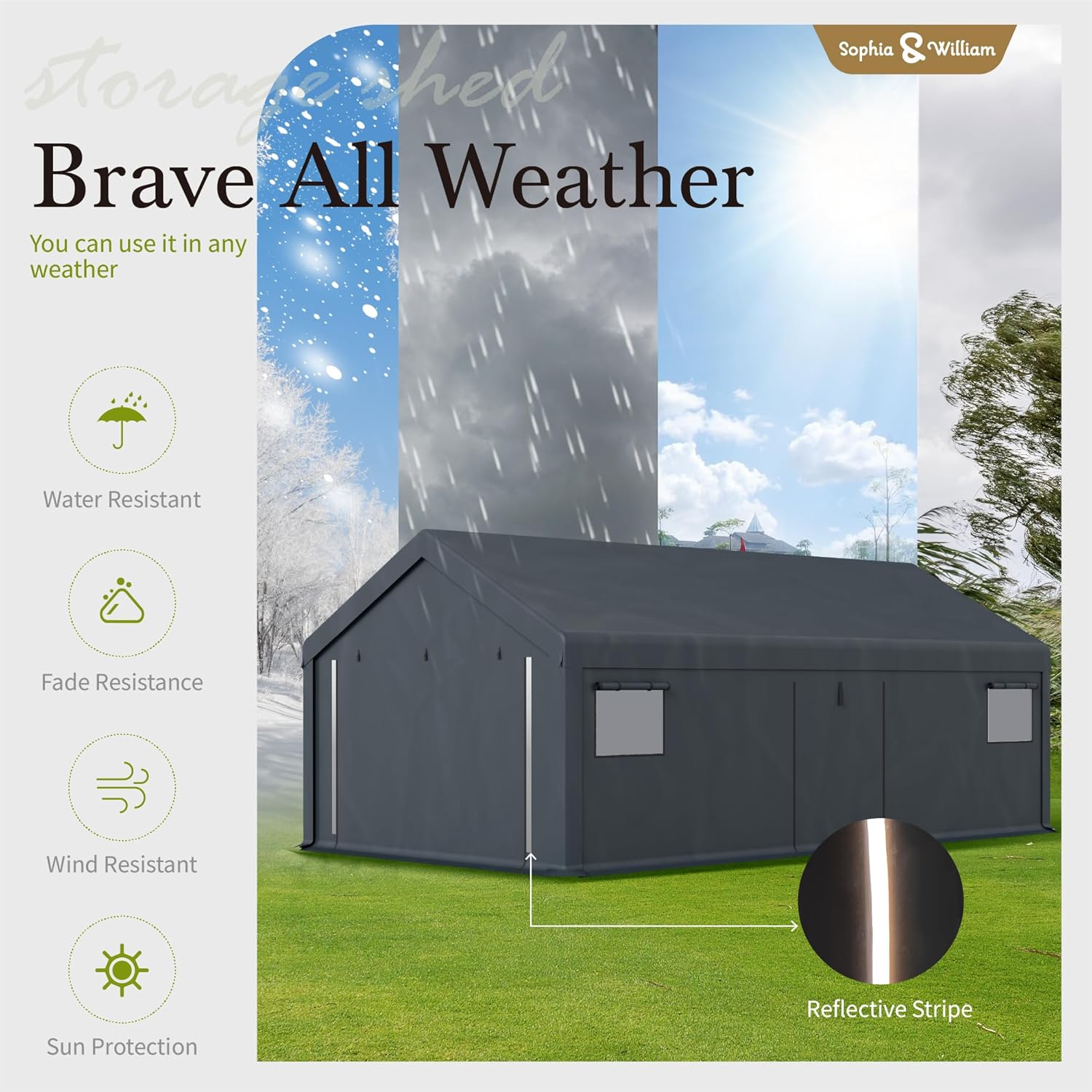 Sophia & William Carport Storage Shed 13x24 ft Portable, Heavy Duty Car Port Canopy Garage Shelter with Sidewalls and Roll Up Doors for Automobile Boat Motorcycle Bike, Gray
