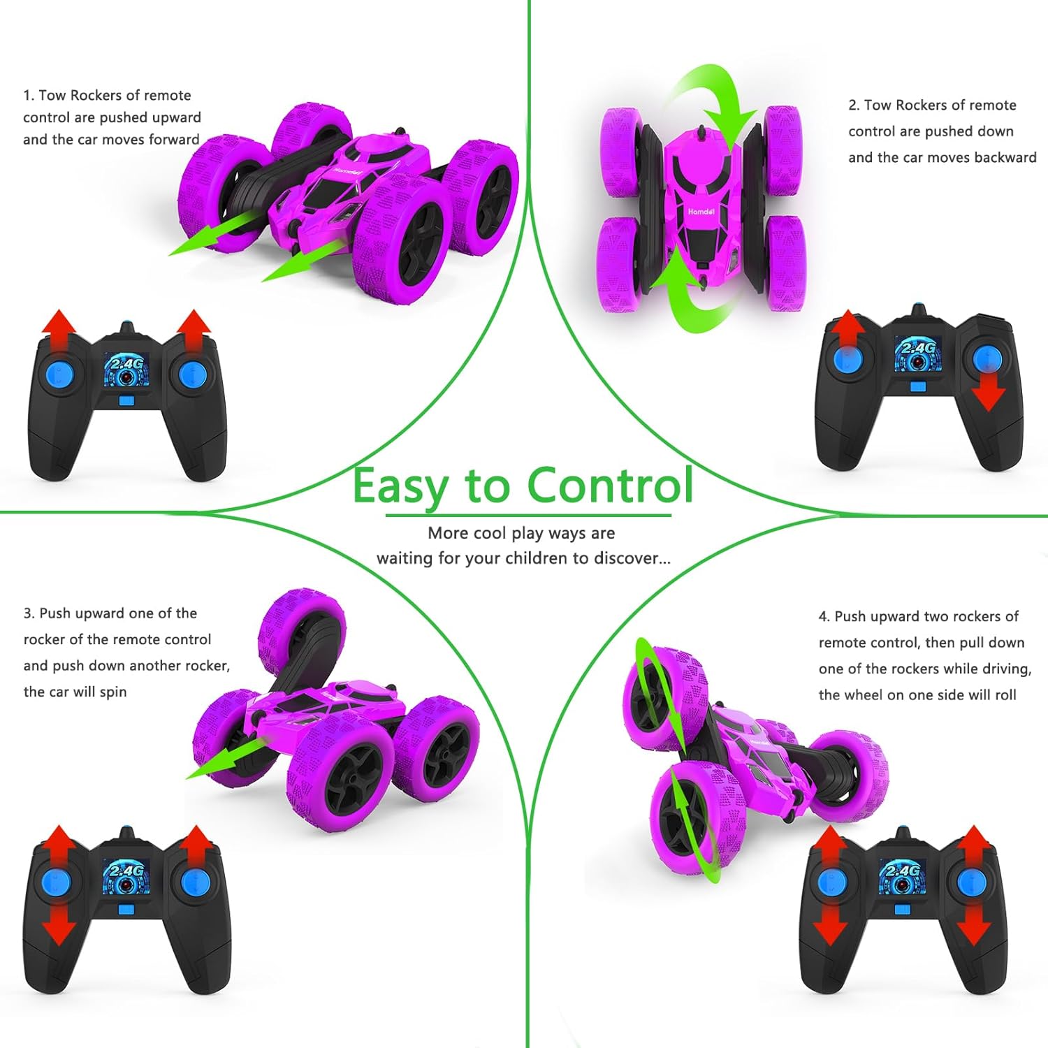 Remote Control Car for Girls, Stunt Rc Car, Princess Toys for Girl 6 7 8 9, Electir Toy, Double-Sided 360° Rotating 4WD Rc Drift Truck for Birthday Gift (Purple)