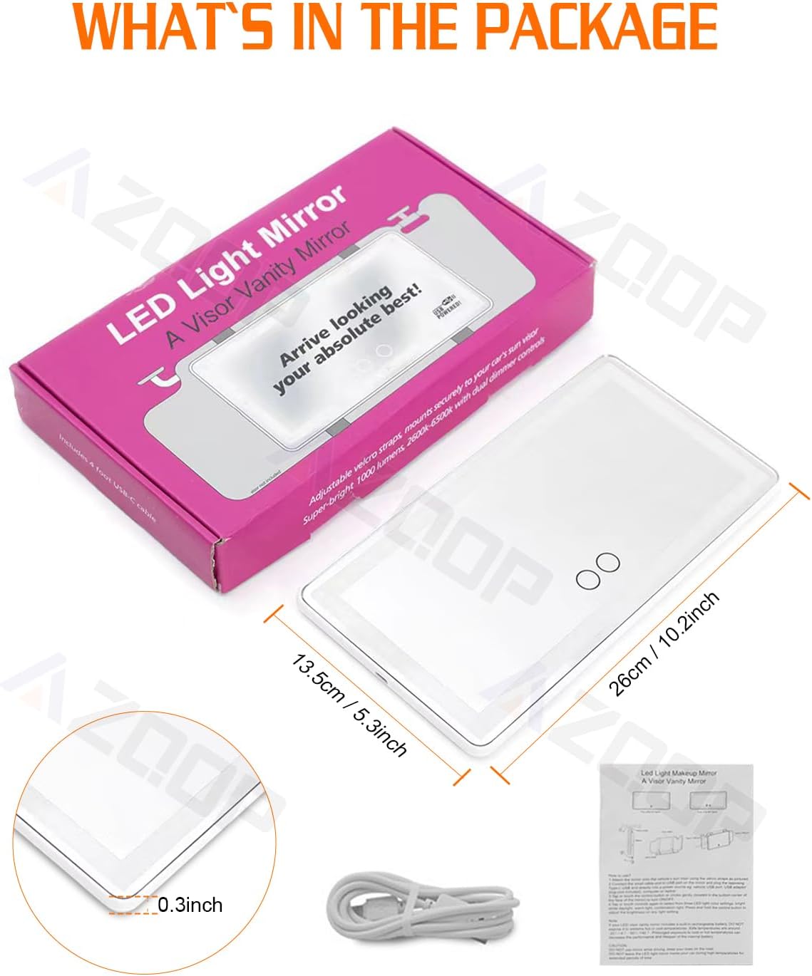- Led Mirror for Car - AZQOP car makeup mirror is equipped with lighting and has a large size, making it easy and quick for you to achieve a perfect makeup look in the car. Moreover, the lighting of the makeup mirror is soft, not dazzling, not dizzy, and the makeup effect is realistic.