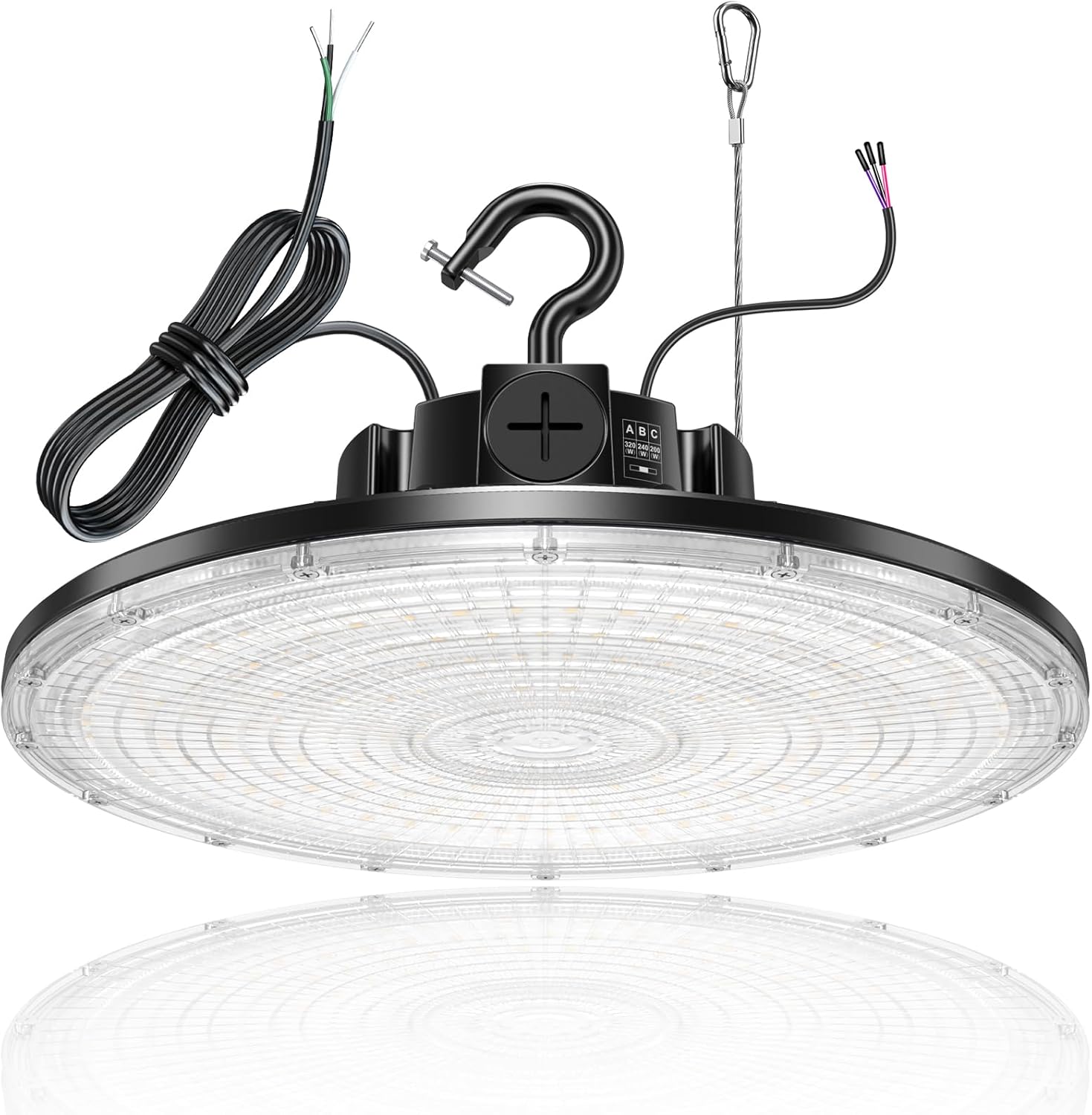 - 3 Wattage Switchable: YELLORE led high bay light offers 3 wattage options in 1 fixture - 300W, 240W or 200W. You can slide to suitable wattage during the installation for different brightness & installation heights. The high bay light has high efficacy of 150LM/W at 5000K, 300W puts out 42,000 Lumens, saving over 80% on electricity bill