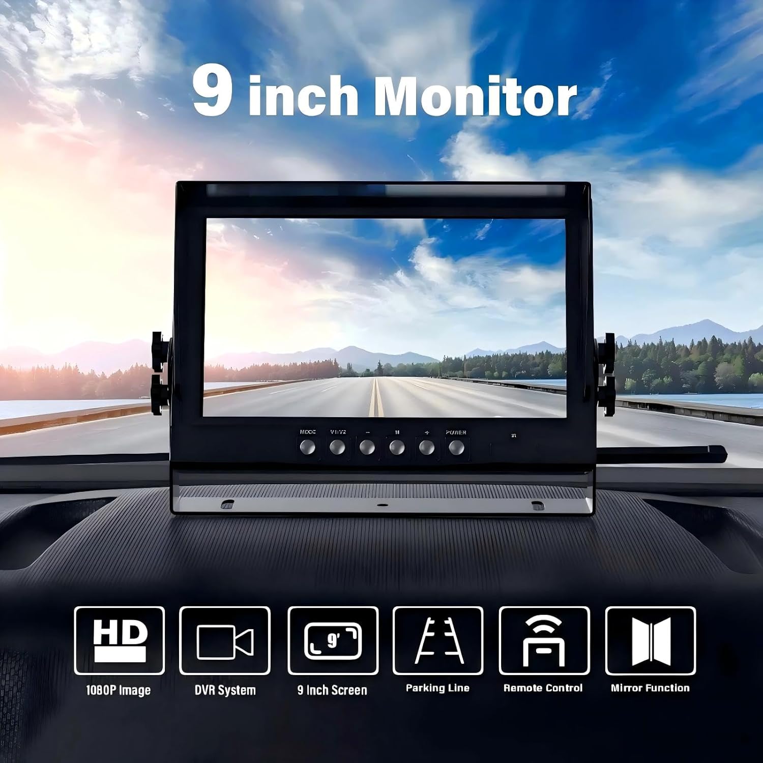 - The system features an integrated DVR recording capability with a 9-inch expansive LCD monitor. It includes an SD card slot for convenient video recording directly onto the card. It supports both local playback and loop recording, allowing for easy navigation and retrieval of recorded footage directly through the monitor.