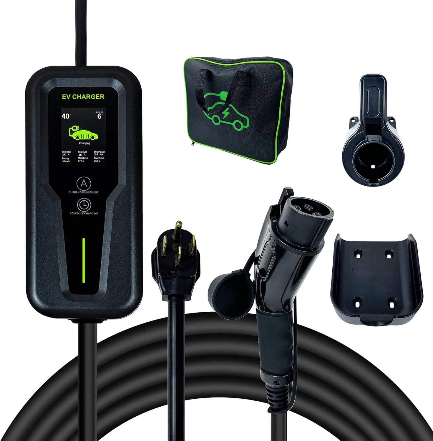 Level 2 EV Charger 40Amp, 240V, NEMA 14-50 J1772 Connector and 25 ft Cable,Portable Electric Vehicle Charging Stations with LCD Screen-1PC