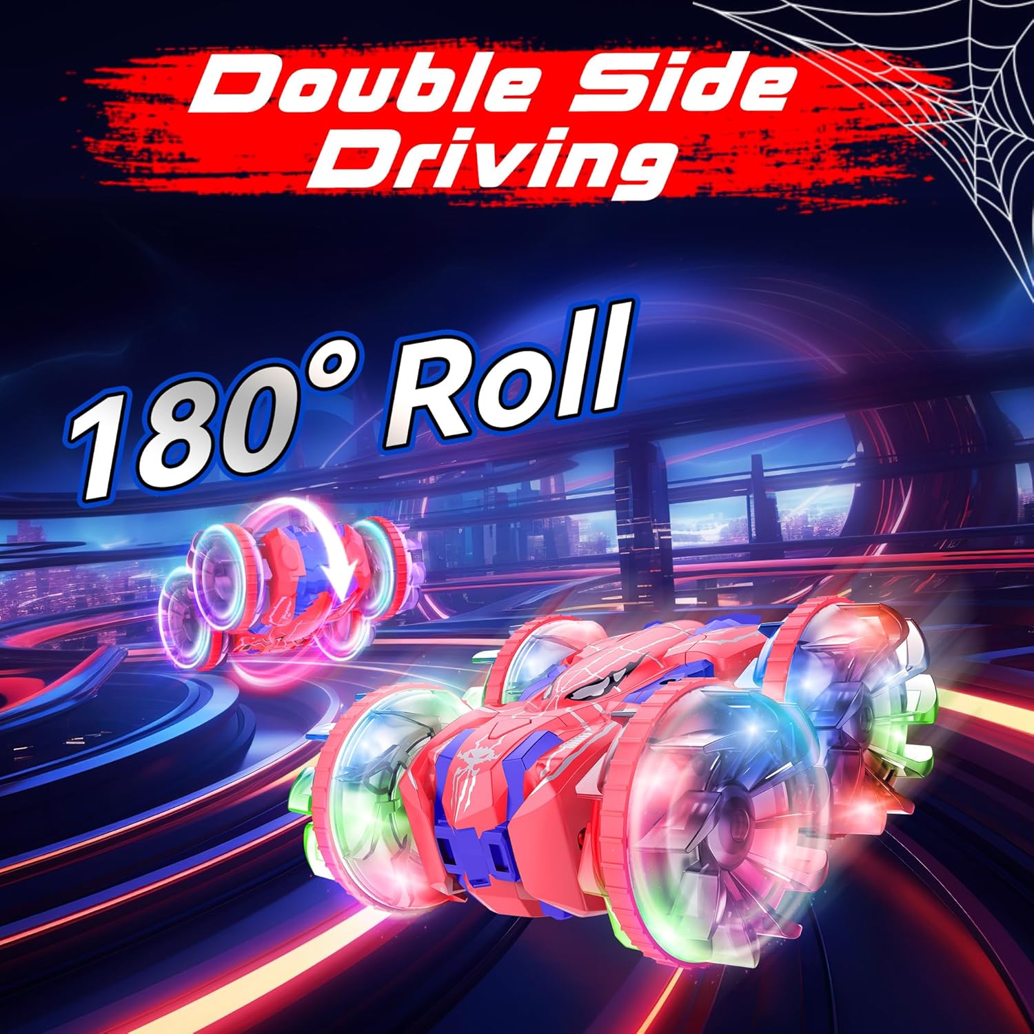 - 360° Rotating & Double-Sided RC Stunt Car: It can make amazing 360 degree rotation and 180 degree flip on double sides of the driving stunts, forward & backward are very simple and easy to operate. The off-road design supports it to shuttle easily on land, beach, grass, pool, lake, snow and other terrains. Playing and racing fun together with parents and kids. Perfect birthday gift toys for 4 5 6 7 8 9 10 11 12+ years old boys and girls