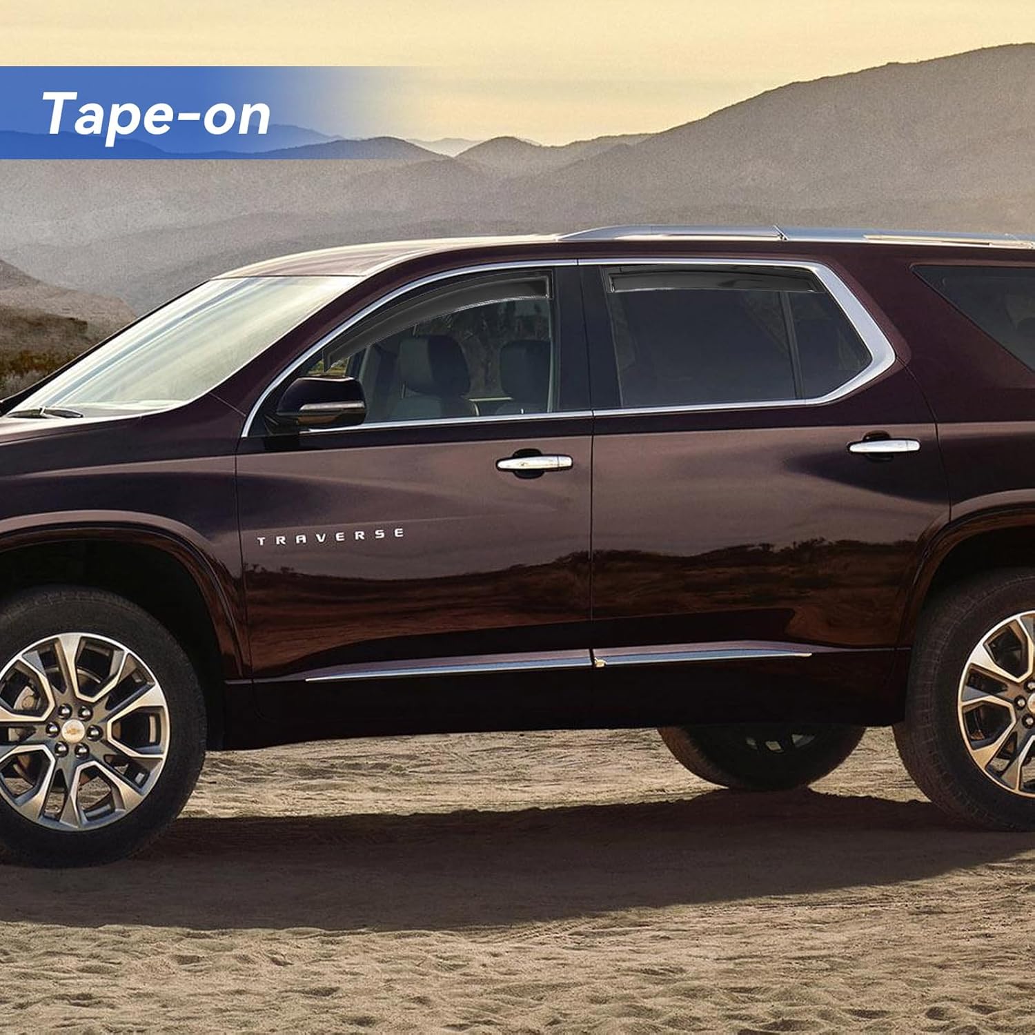 - 【Perfect Fit】YQAUTEC 4Pcs Window Visors Rain Guards Shield fit for 2009 2010 2011 2012 2013 2014 2015 2016 2017 Chevy Traverse, Side Window Vent Wind Deflectors Visors Shades for 09 10 11 12 13 14 15 16 17 Chevy Traverse.