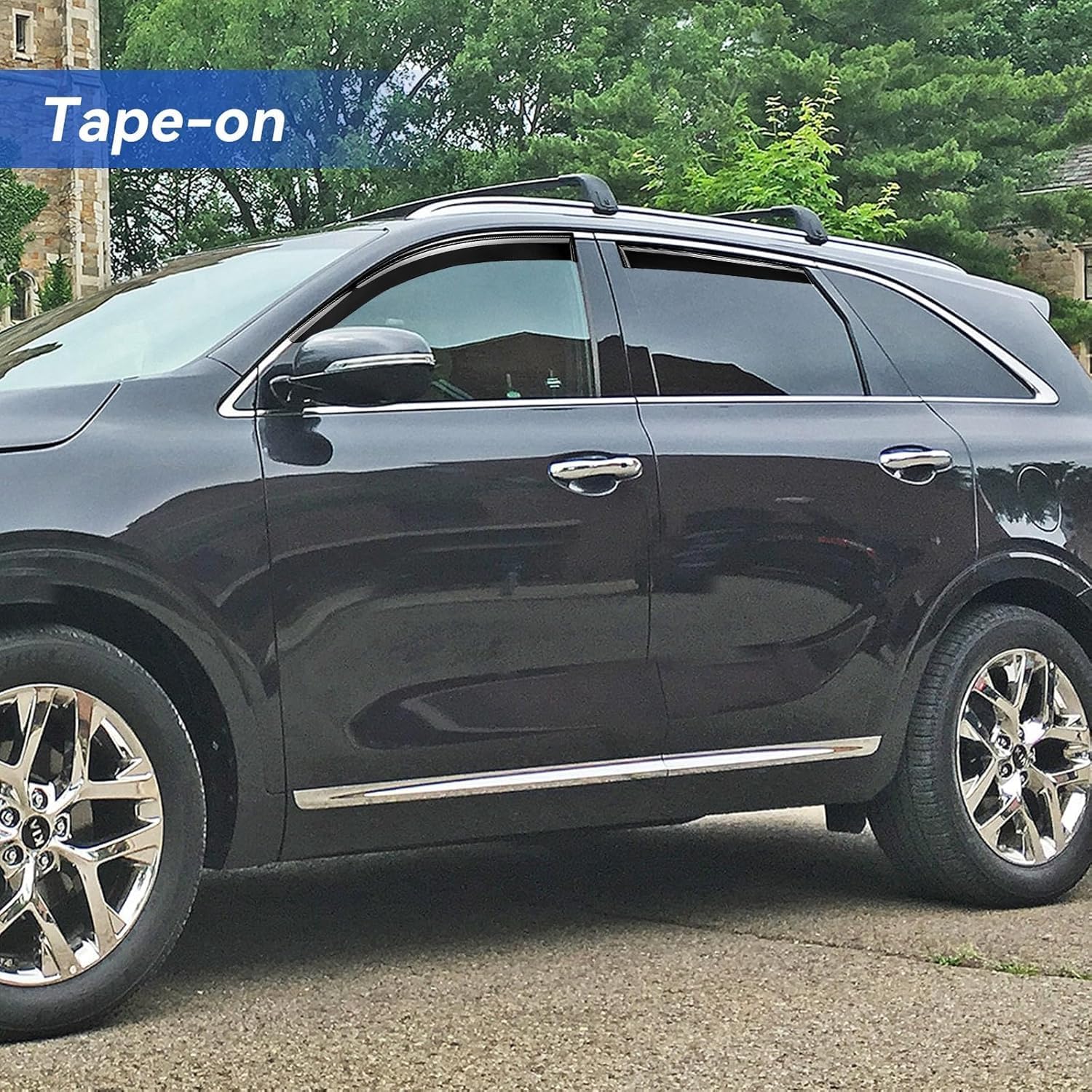 - 【Perfect Fit】YQAUTEC Out-Channel Window Visors Rain Guards Shield fit for 2016 2017 2018 2019 2020 16 17 18 19 20 Kia Sorento, Side Window Vent Wind Deflectors Visors Shades.