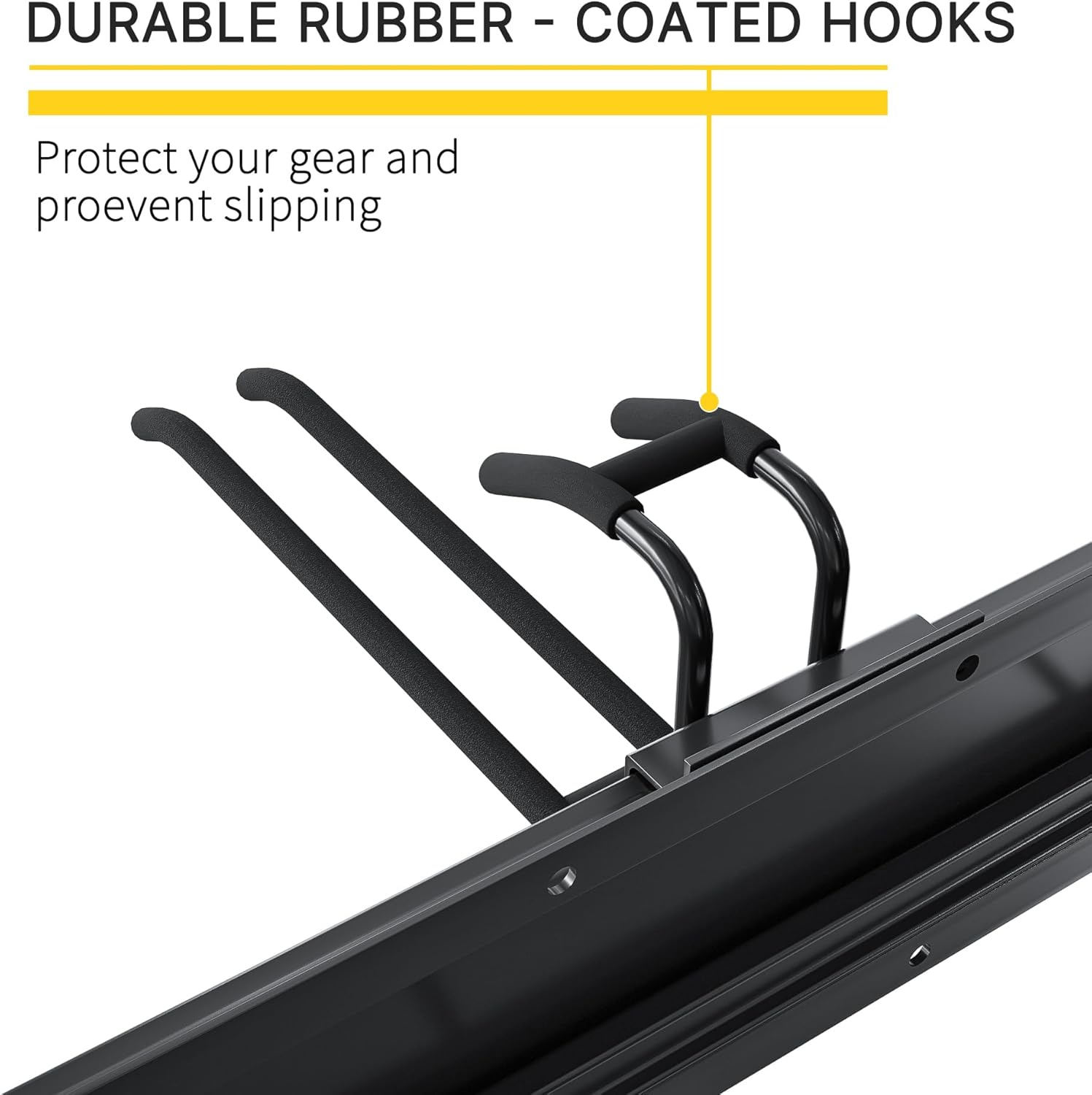 Garage Organization, Garage Tool Organizer Wall Mount with 48 inches Rails and 6 Double-layer Hooks, Tool Organizer Rack For Yard Tools, Shovel, Chair, Snowborad