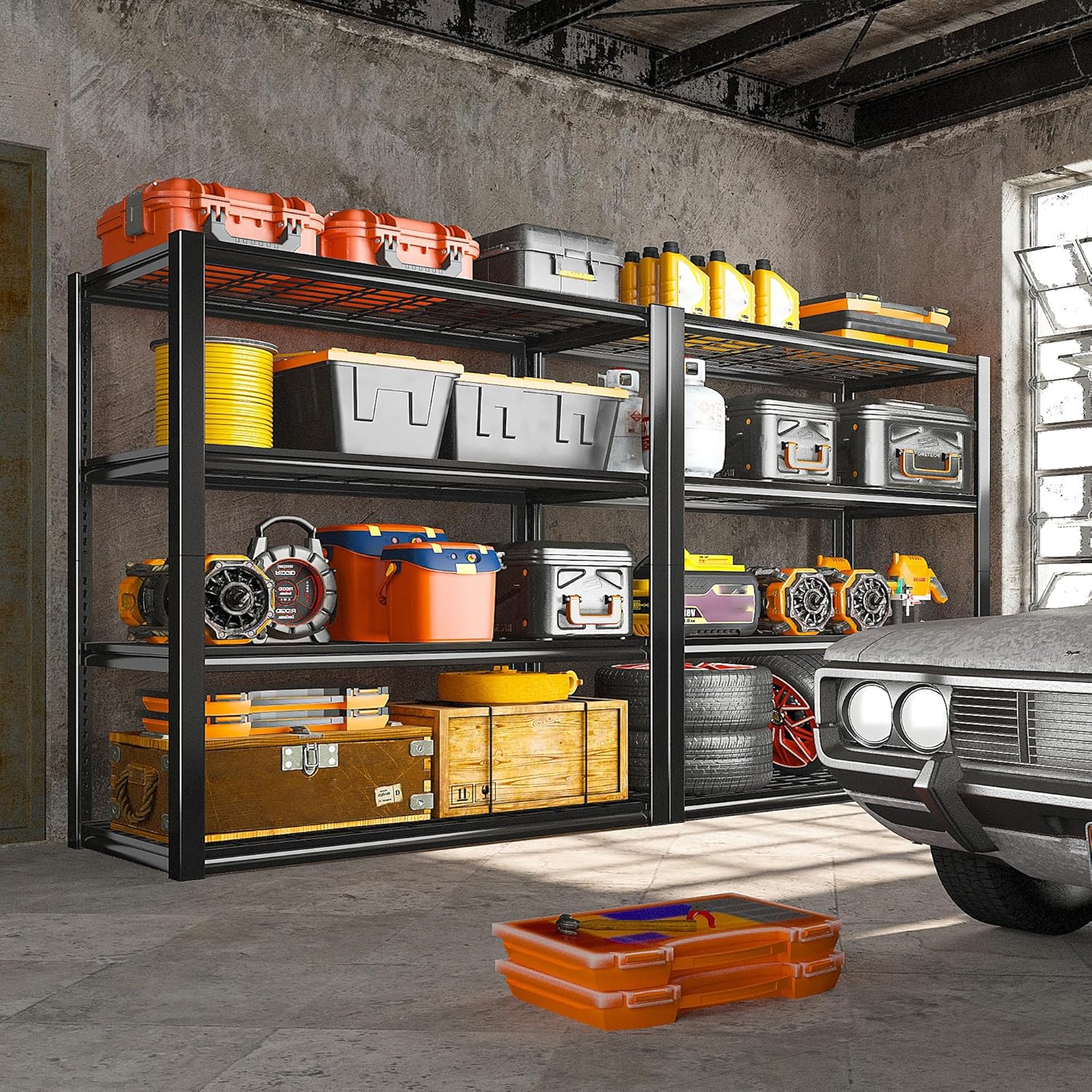 - 【2200 LBS Garage Shelving Heavy Duty】This garage shelving is born for placing heavy objects, its load-bearing capacity can reach an amazing 2200LBS, each layer bearing 550LBS, even if you are stacked with fitness equipment on the top, this garage storage shelves will not be deformed and bent. The stable and strong garage shelves makes it completely suitable for warehouse, supermarket, industrial and other scenes, and can carry all kinds of heavy goods