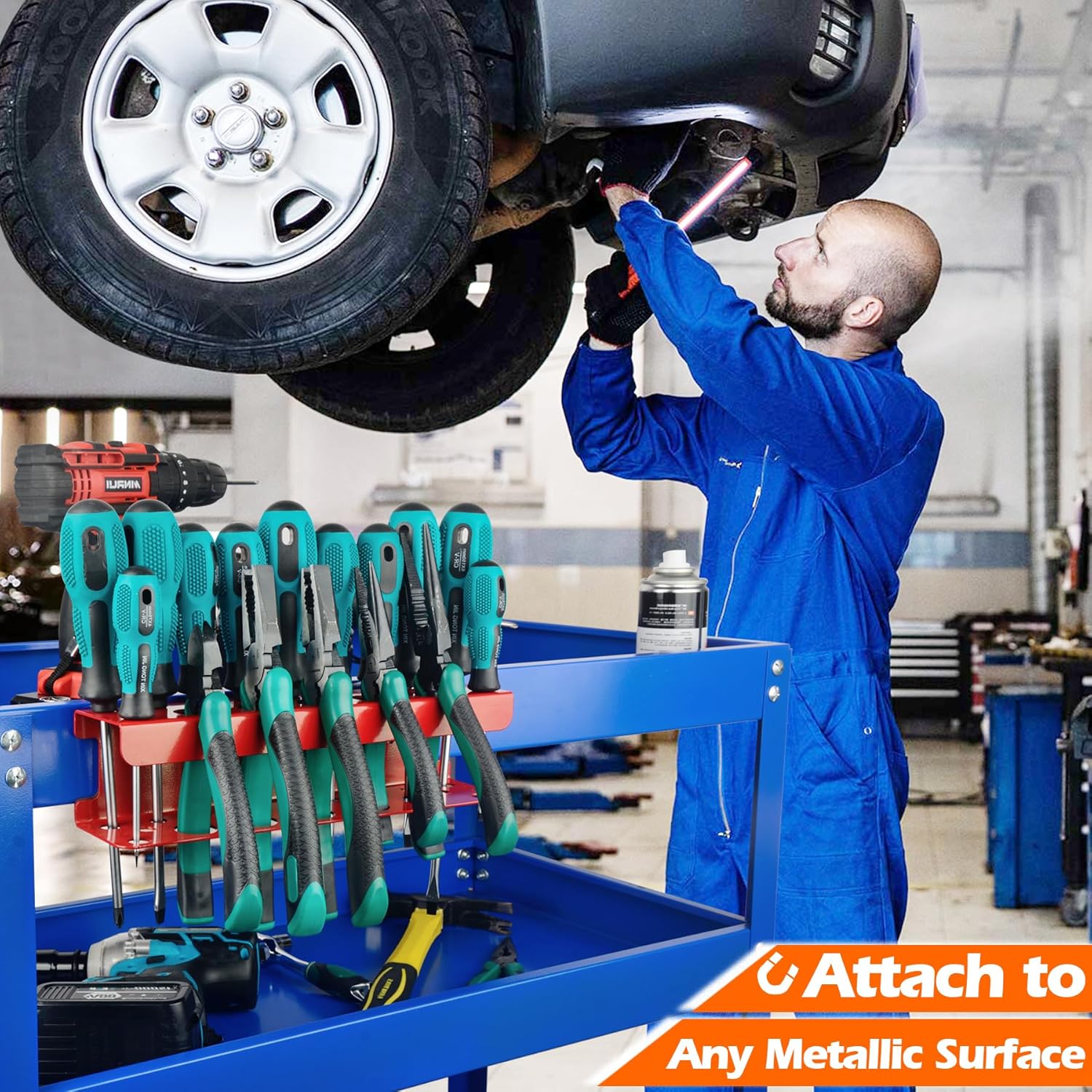 MUTUACTOR Magnetic Screwdriver Holder,Heavy Duty Magnetic Mount Red Screwdriver Organizer,Magnetic Tool Holder Durable Storage Holder for Screwdriver Plier Shear Tool Chest Cart Workbench,1PCS