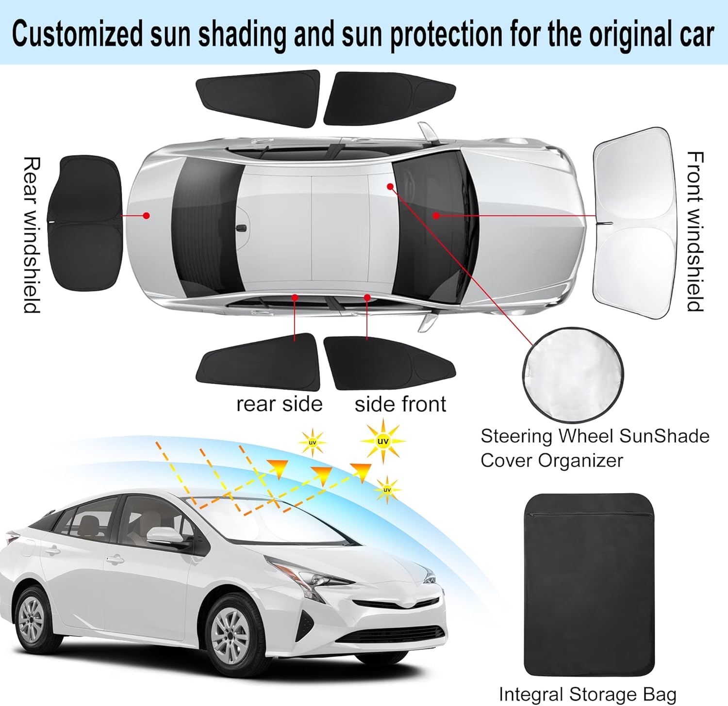 - Customized Design:The sun shade custom fit for Toyota Prius Hatchback 2016-2022 (NOT for Prius C or Prius V).Our window shade is according to the car size design,perfectly fit your car and does not need to trim.windshield sun shade solve the problem of light leakage and incompatibility of the old umbrellas.The sunshade designed for Toyota Prius Hatchback(NOT for Prius C or Prius V).