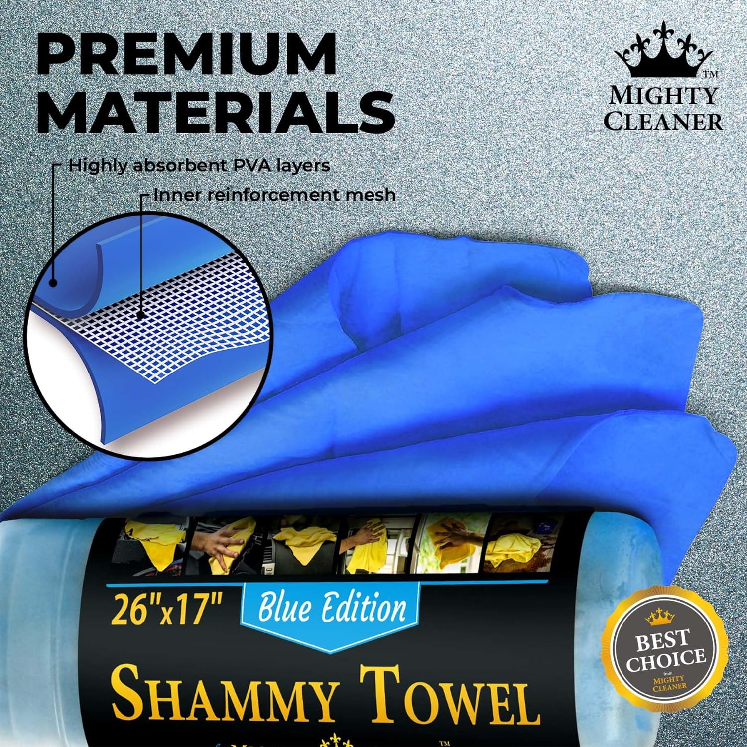 - PERFECT SIZE (26”x17”) - This handy-sized car shammy for drying is ideal for delicate washing and drying your vehicle’s finish as well as other sensitive surfaces. You can also use synthetic chamois for many household tasks like sopping up carpet spills or keeping your bathroom and shower spotless.