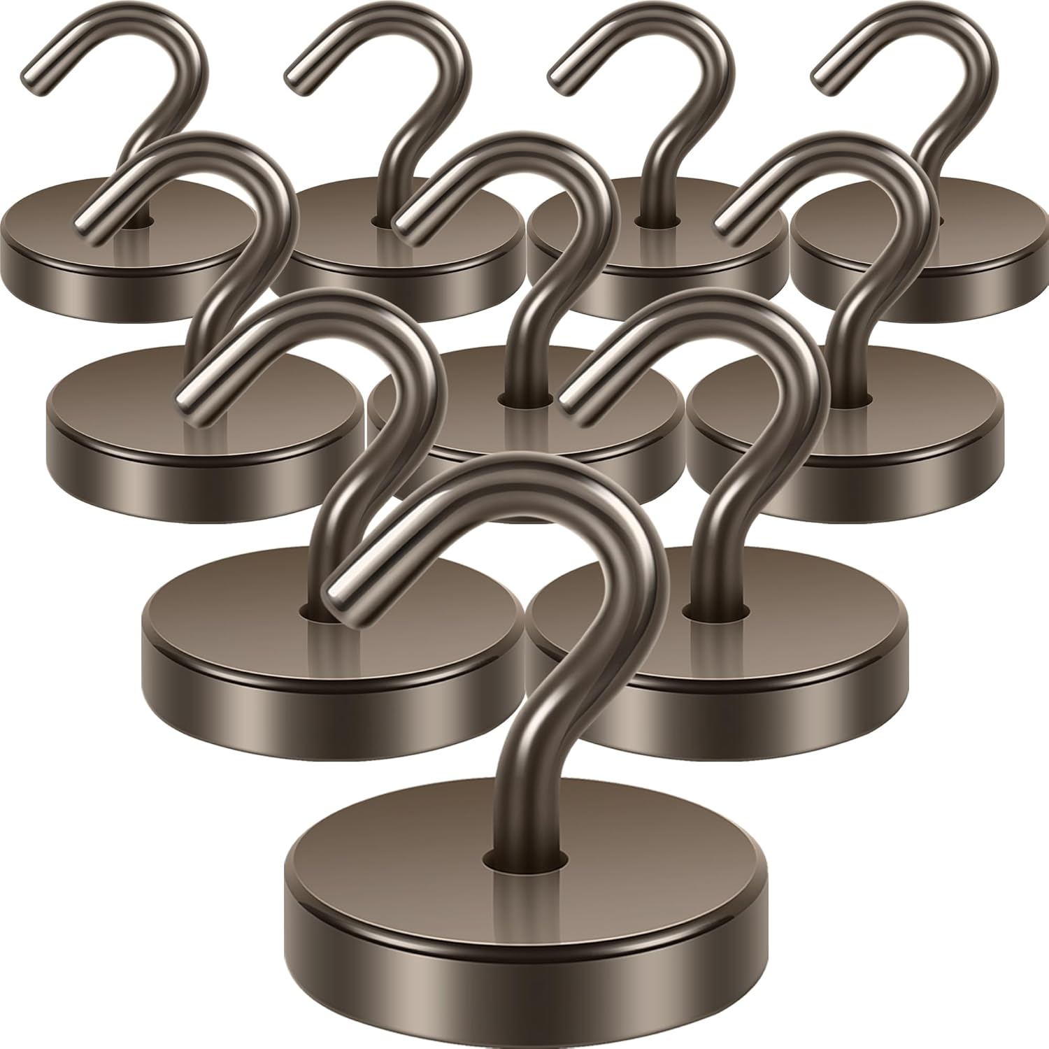 Neosmuk Magnetic Hooks, Cruise Ship Essentials, 120lb+ Heavy Duty Magnetic Hooks for Cruise Cabins, Refrigerator, Grill, Hanging, and Travel | Extra Strong Must-Haves Magnet Hook,Brown, Pack of 10