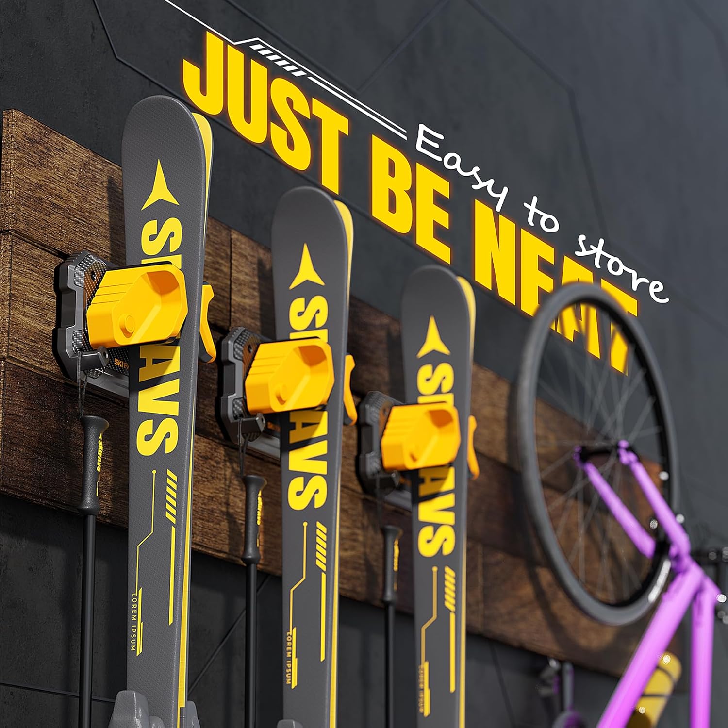 Ski & Snowboard Wall Rack for Garage - Fits Any Ski/board, Damage-Free Storage, Yellow, 6 Pack