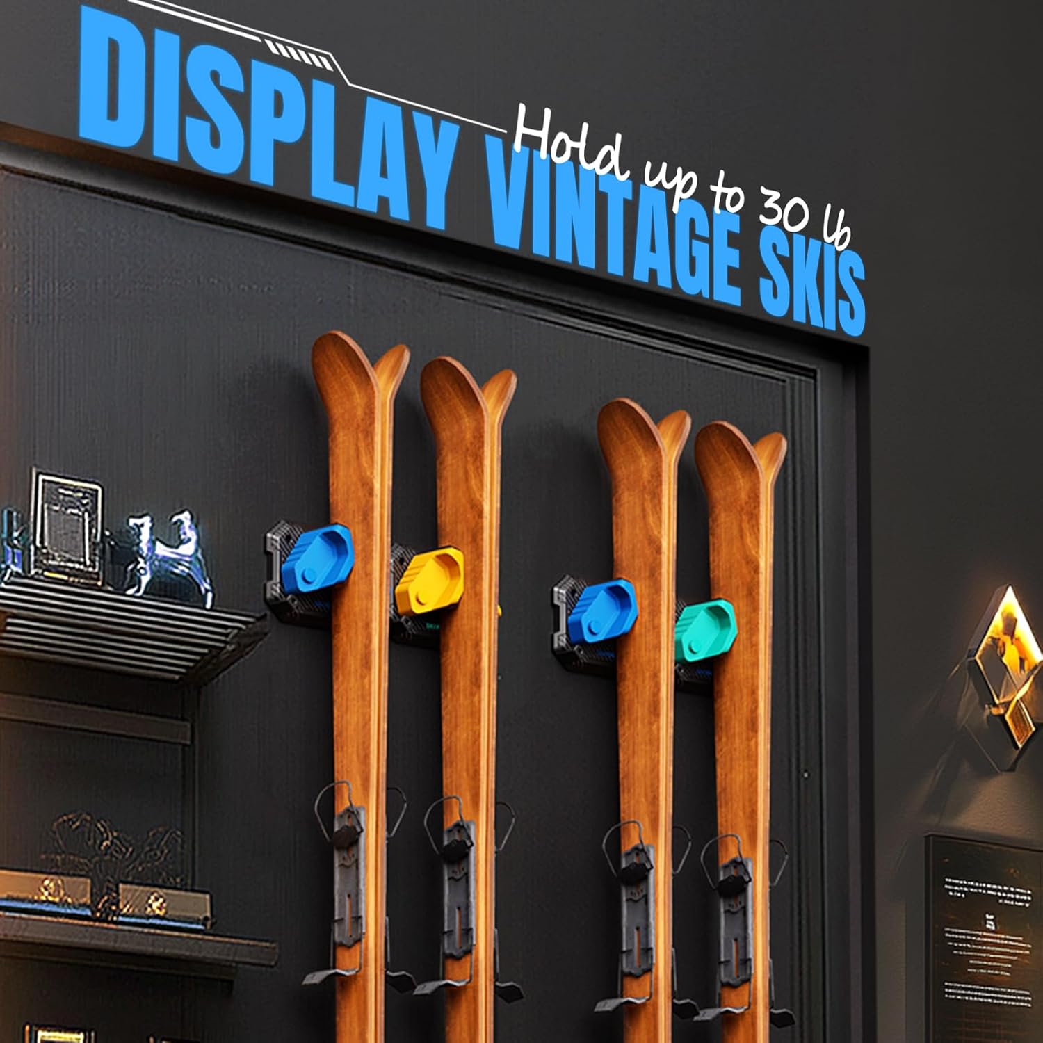 - Versatile and Stylish: Our ski holder isn't limited to just skis. It can accommodate any skis, snowboards and skateboards. Its multifunctional design also allows you to hang brooms, sleds, and other tools. With its staggered arrangement, our ski wall mount not only provides efficient storage but also adds a touch of elegance to your room, transforming it into a stylish winter sports haven.