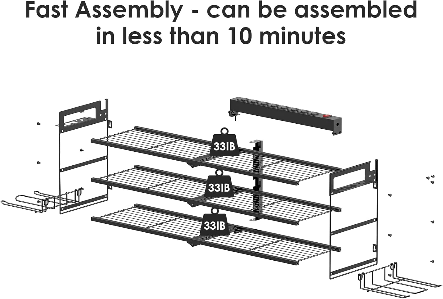 - 8 plugs on the top of the tools storage shelf, and power tools and batteries can be charged there, your battery is fully charged before the next job, and can charge multiple devices at once in the same place where the tools are organized.