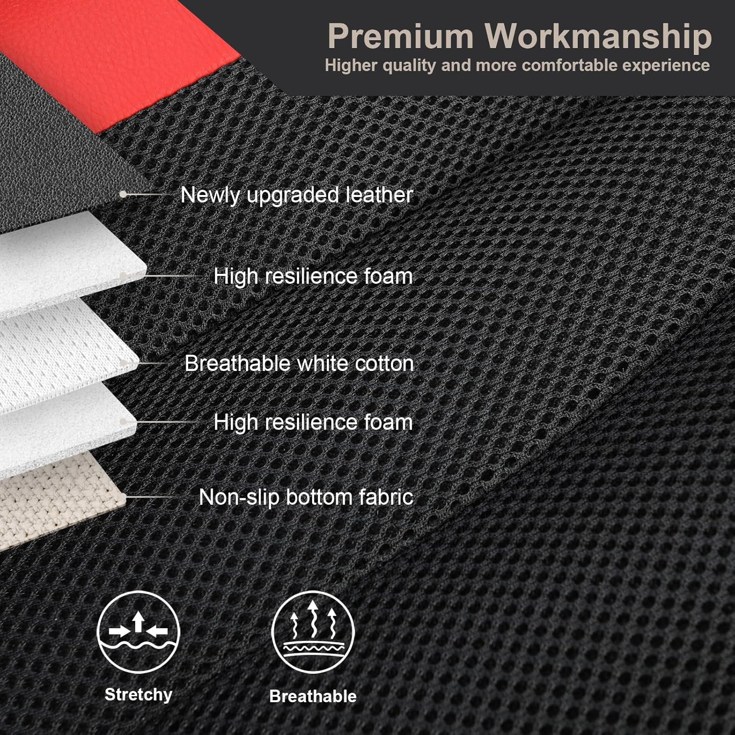 - The combination of padded faux leather and breathable mesh not only enhances overall practicality and aesthetics but also protects the original seats from wear, stains, and pet hair