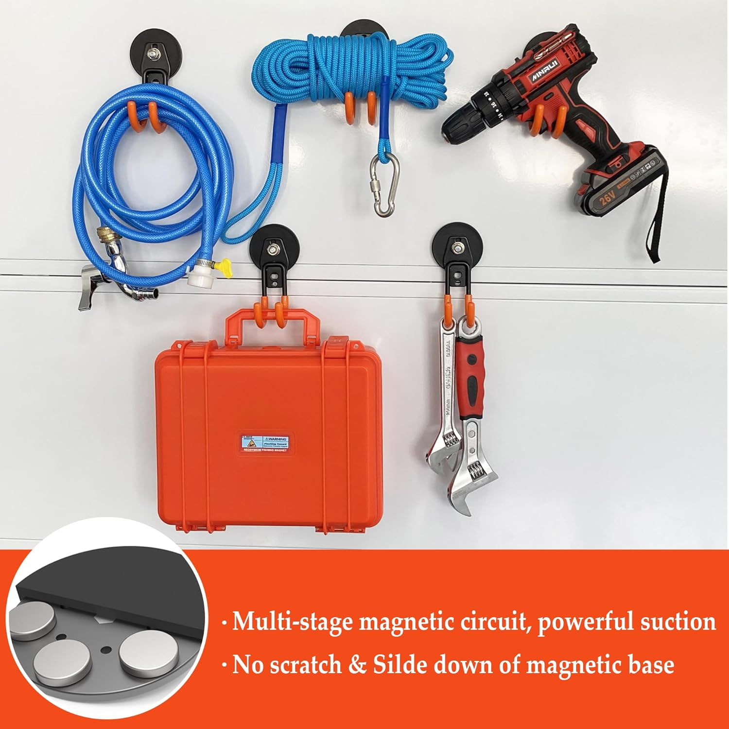 - [4 Pack Magnetic Hooks]: Large J Garage Magnet Hooks, flat and simple design, don‘t take up space,in line with modern decoration style.It's an ideal choice for homes, kitchens, warehouses and other scenes.This perfect tool hanger is quite suitable for your home organization