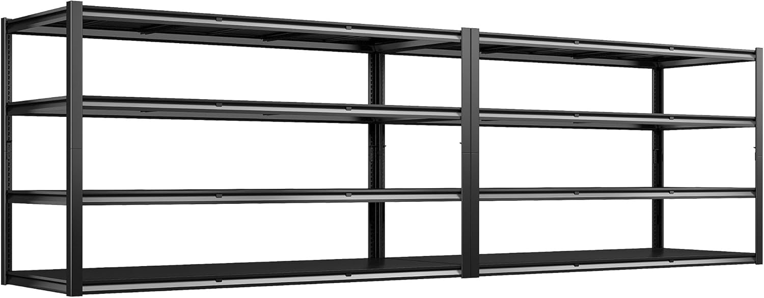 - 【60 "W x 60"H x 24"D Wide Garage Shelving】The storage shelves are 60"W x 24"D x 60"H, this extra wide garage shelving heavy duty is suitable for garage, warehouse, basement, warehouse and etc.At the same time, it can be used as an industrial shelving, suitable for storing heavy goods such as tire generators.The 4 tier metal shelving unit can store storage tools and keep your space clean and tidy