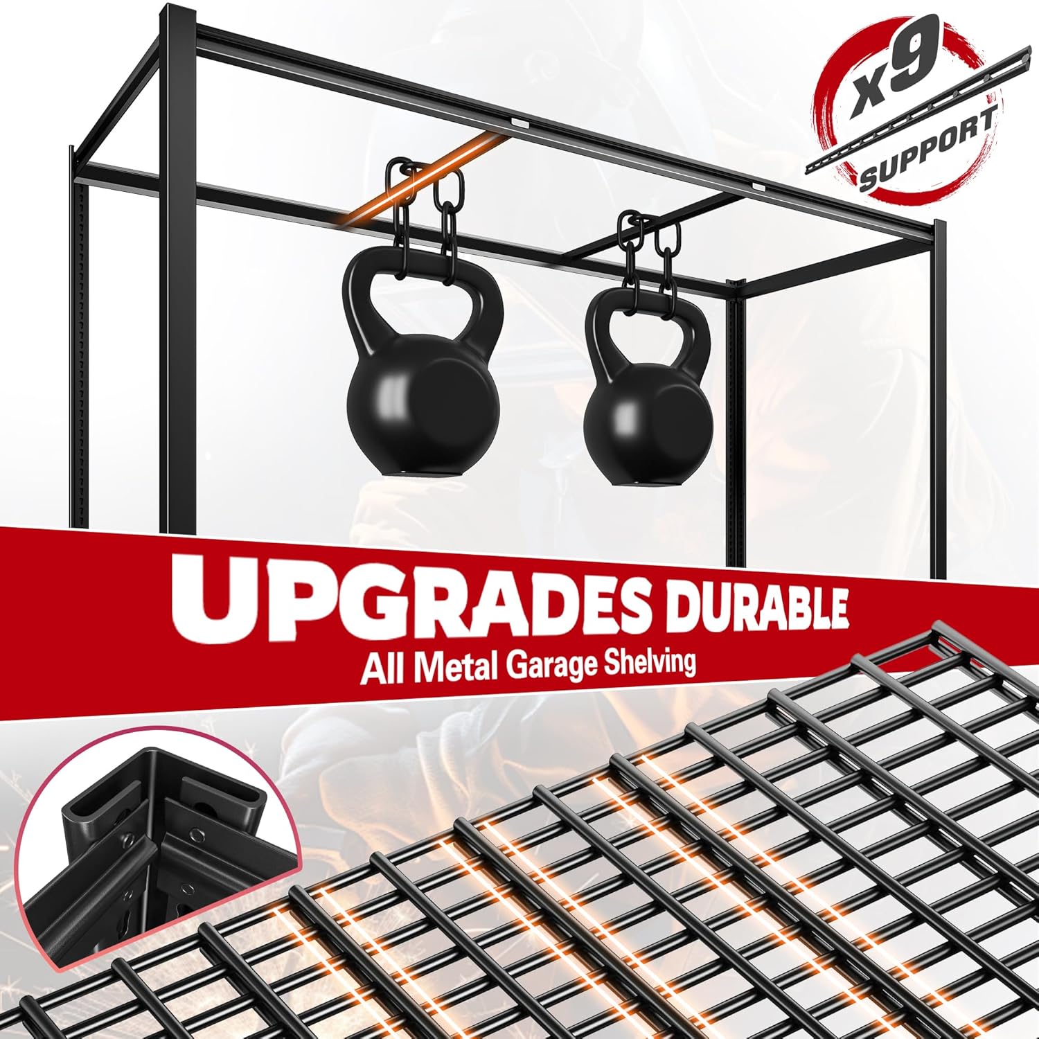 - 【2900LBS Heavy Duty Shelving】The combination of thickened metal mesh of wire shelving and double-layer metal shelves of columns gives the all metal shelves for storage an ultra-high load-bearing capacity of 2900LBS, please rest assured to store heavy items on the garage storage shelves such as toolboxes, vehicle parts, files, dumbbells, office supplies, etc