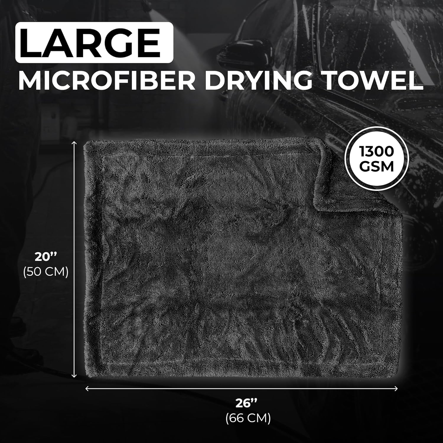 - Superior Water Absorption Technology - Transform your car washing experience with our premium microfiber car drying towel featuring 1300 GSM double twisted loop technology that delivers exceptional water absorption. This auto drying towel effortlessly removes water spots and streaks while protecting your vehicle's delicate paint finish from scratches and swirl marks.