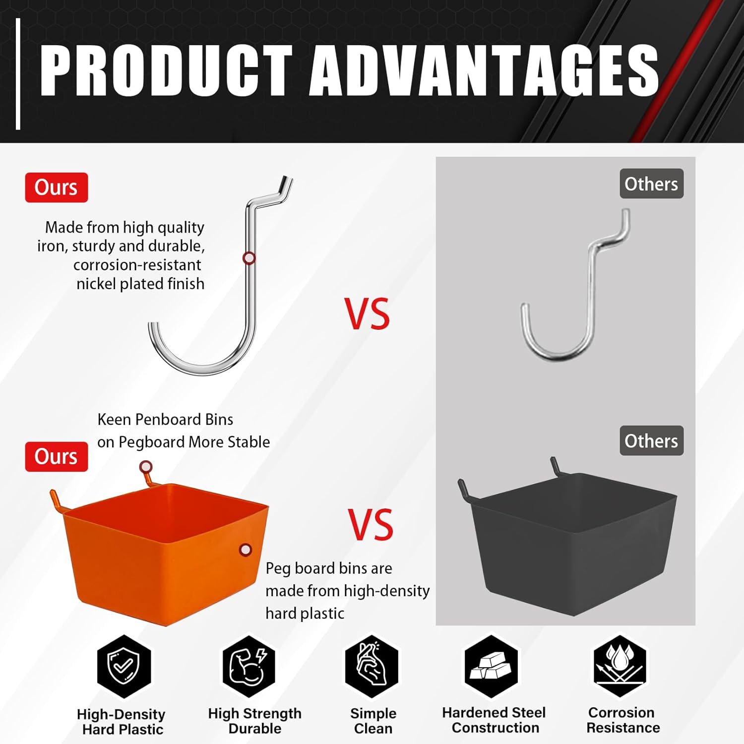 - 【Premium Material】Our pegboard accessory kit is crafted from hardened steel. Surface Chrome finish provides maximum strength, resist rust and corrosion to ensure durability.