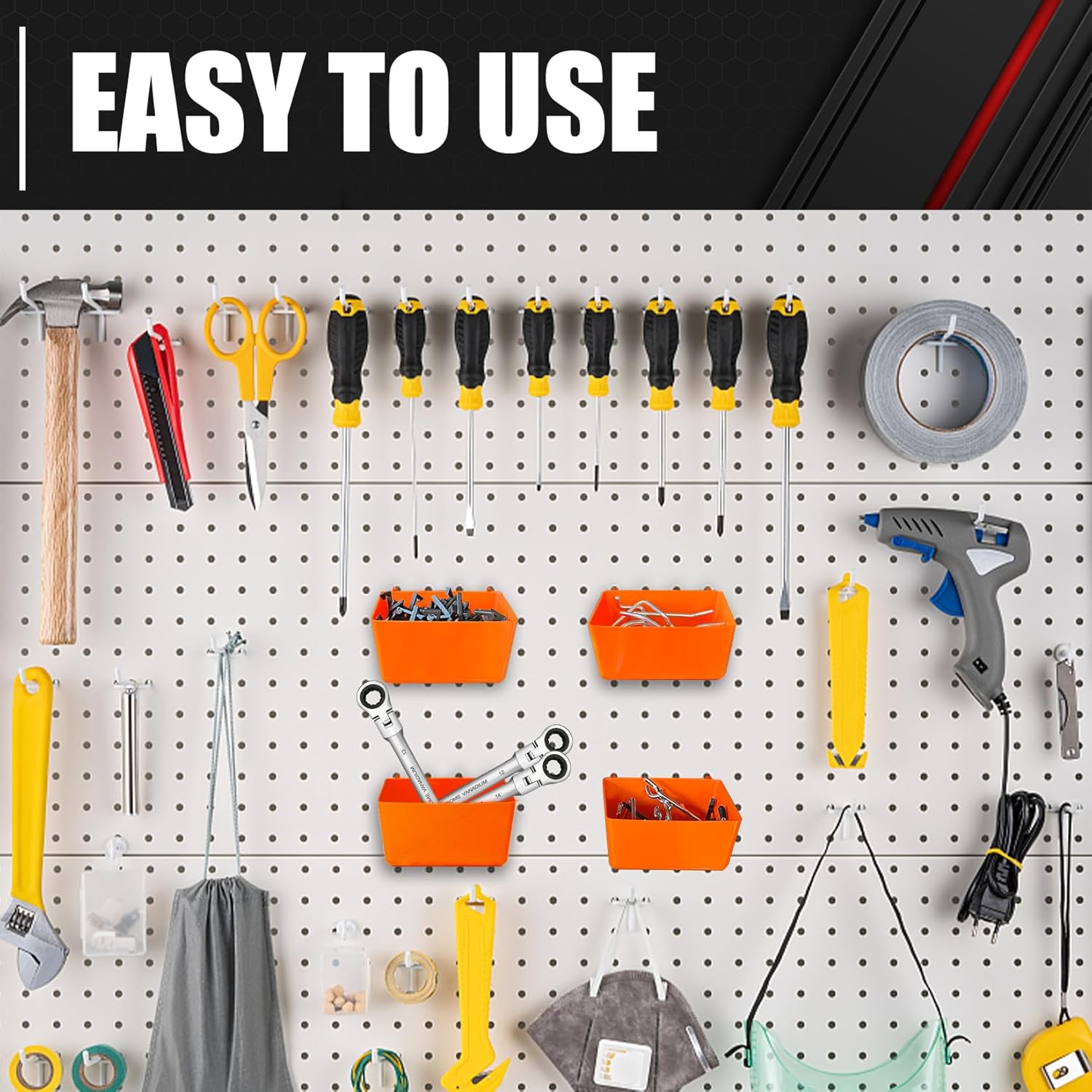 - 【Wide Application】Our kit is ideal for storing tools. Whether it's your garage, workbench, workshop, kitchen, craft room, basement, tool shed, factory or warehouse, our pegboard tool organizers are up to the task. Ensure every space is optimized and clutter free.