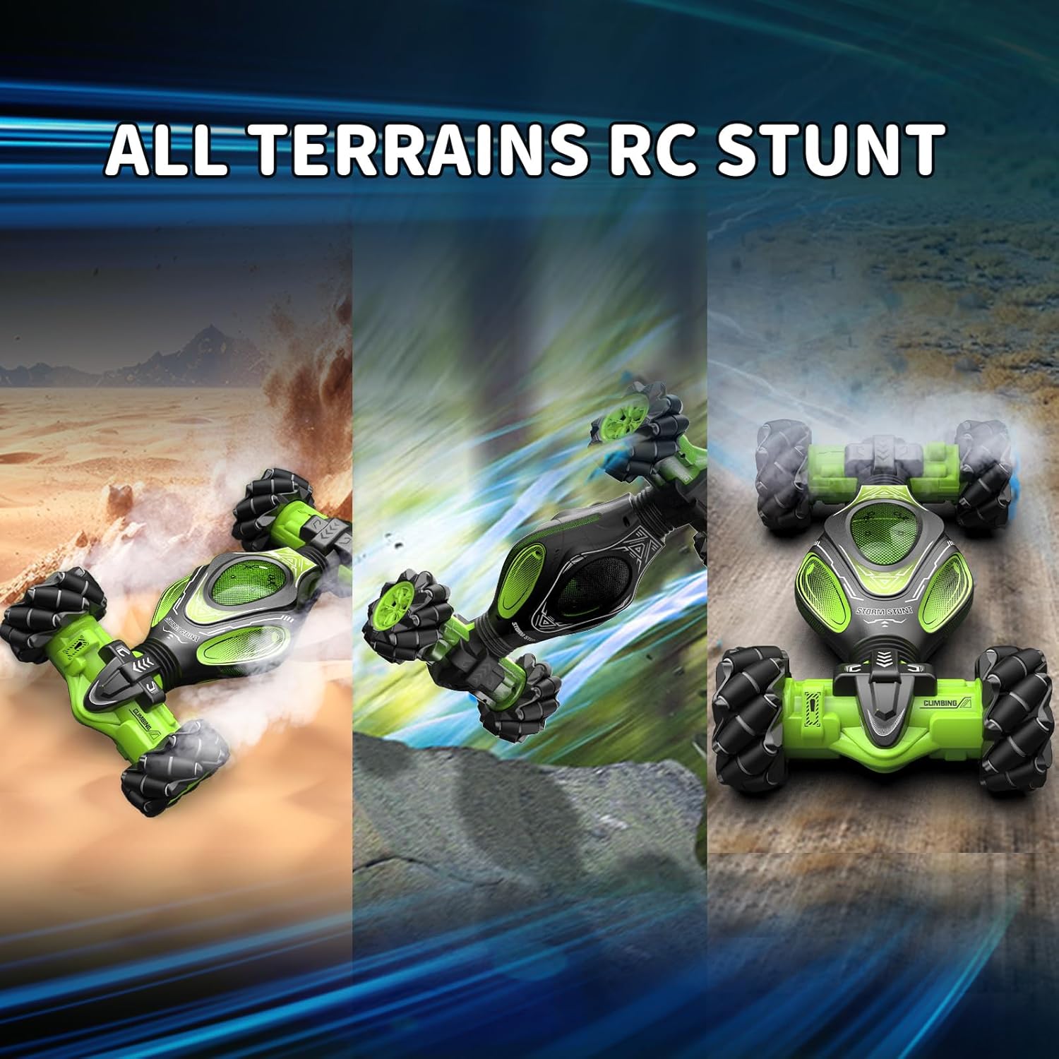 - All-Round Drift & Cool Stunt:4WD High-Tech gesture sensing rc stunt car can drive and drift in all directions, 360° rotation, 45° climbing, double-sided body flip, Double-sided Driving can easily pass obstacles,Cool functions and unlimited fun give children wonderful operation experience and visual effects.