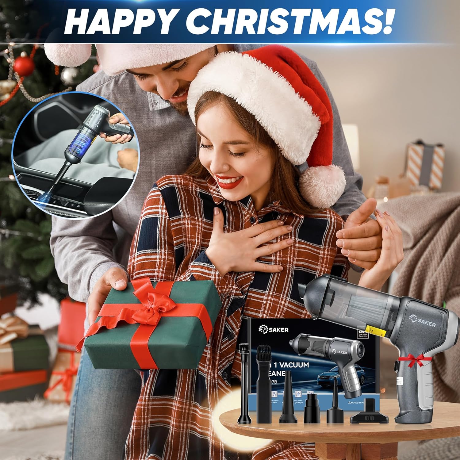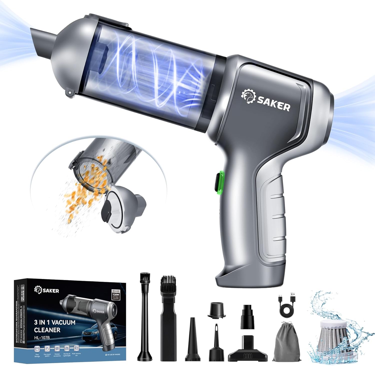 Saker Car Vacuum Cleaner Portable Cordless 14000PA,3 in 1 Handheld Car Vacuum with Brushless Motor One-Click Dust Removal for Cars,Office and Home Cleaning Dark Gray Silver