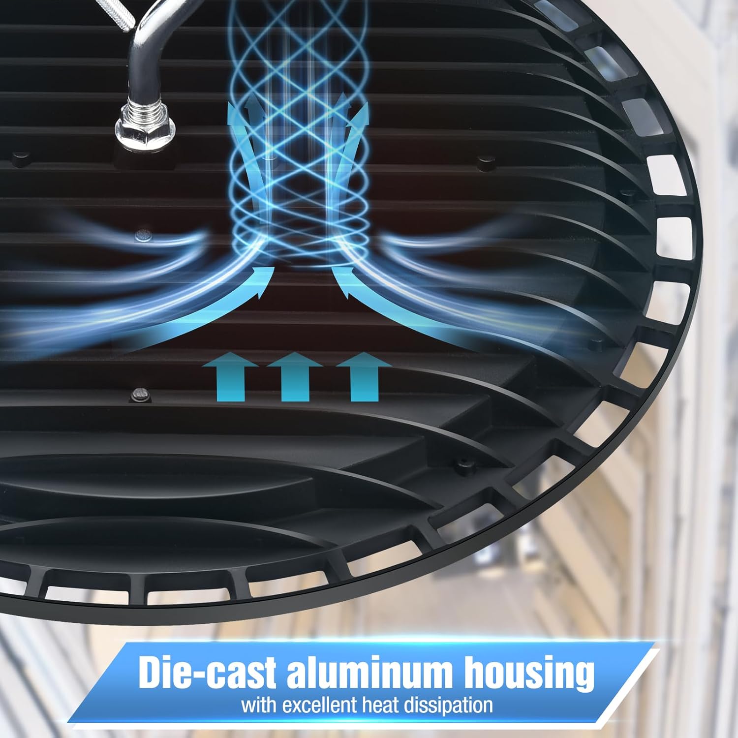 - Super Brightness & Electricity Bill Saving:The 240 watt UFO high bay led lights come with super bright SMD3030 LED chips, up to 40,050 lumens flux out, light efficiency up to 150 lm/w, equivalent to 1050W HID/HPS, and instantly saving your power bill up to 83%