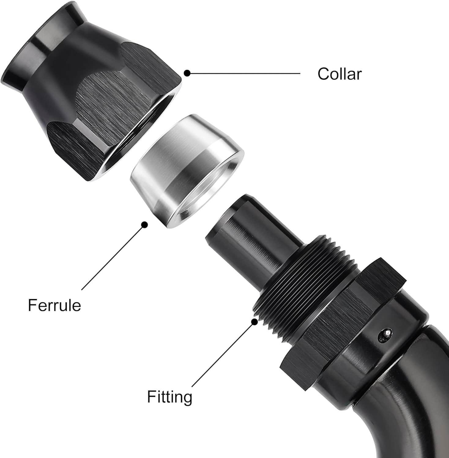 - [Built to Last] The one-piece PTFE hose end fitting is made from lightweight 6061-T6 aluminum alloy, and a black anodized finish on the surface increases durability, anti-corrosion, and wear resistance.