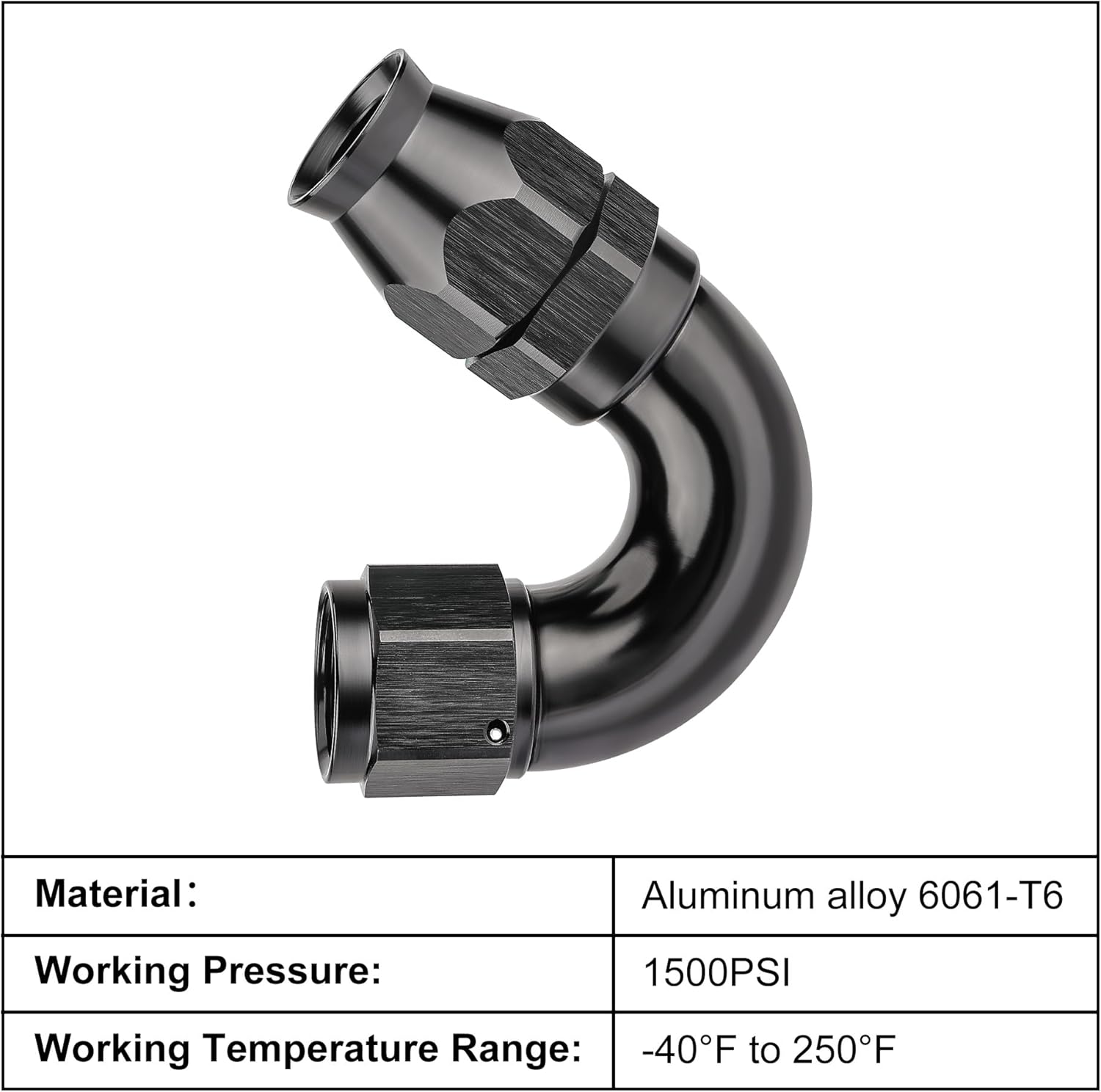 - [Built to Last] The one-piece PTFE hose end fitting is made from lightweight 6061-T6 aluminum alloy, and a black anodized finish on the surface increases durability, anti-corrosion, and wear resistance.
