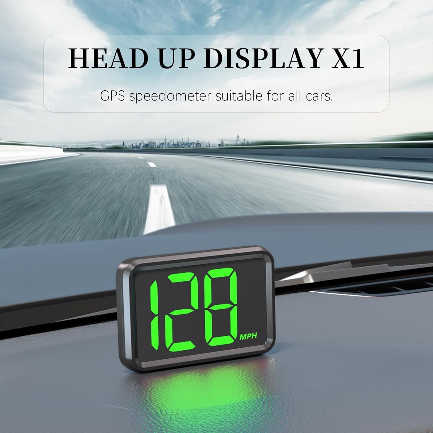 GPS Digital Speed Meter with MPH, Car Head Up Display for All Cars, USB Cable Plug & Play (X1-Green-New)